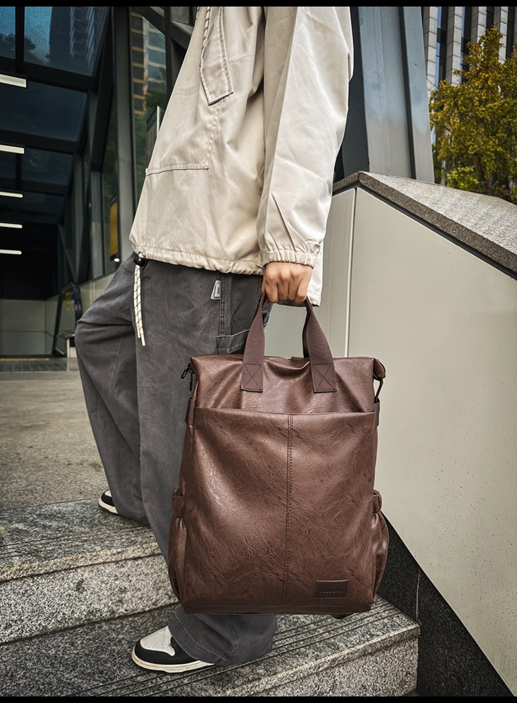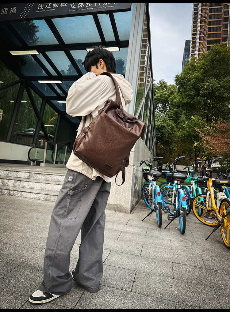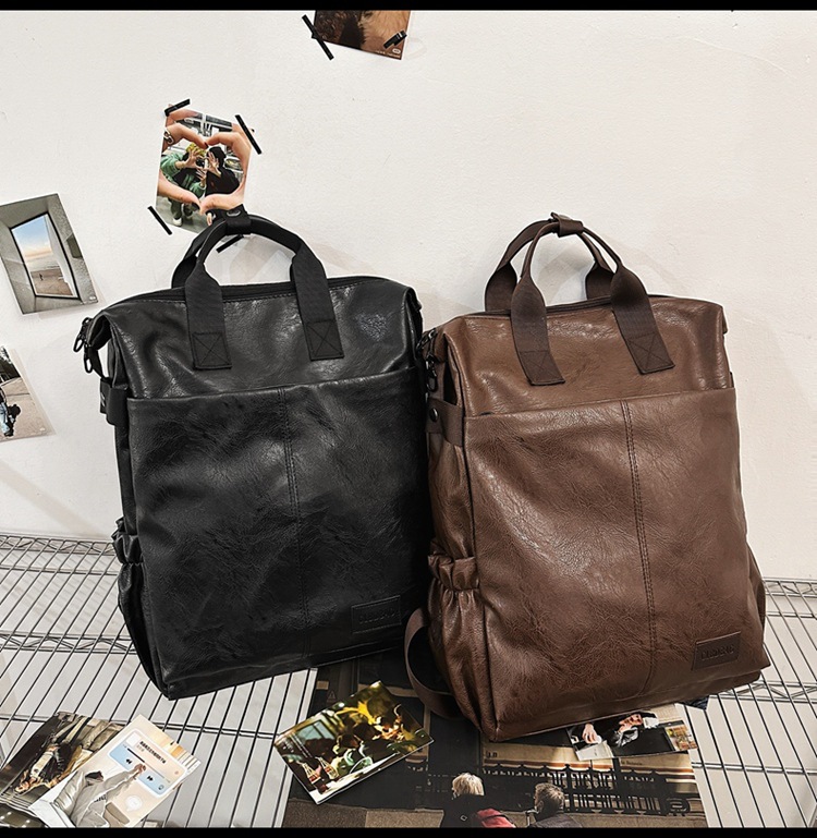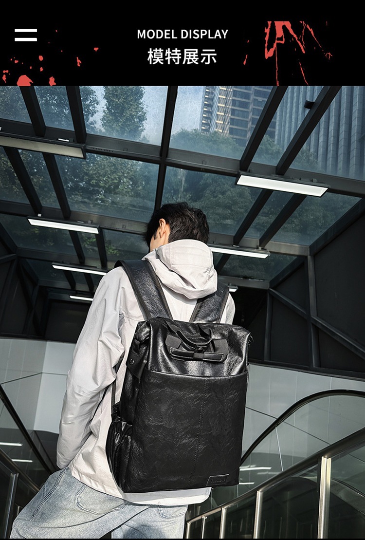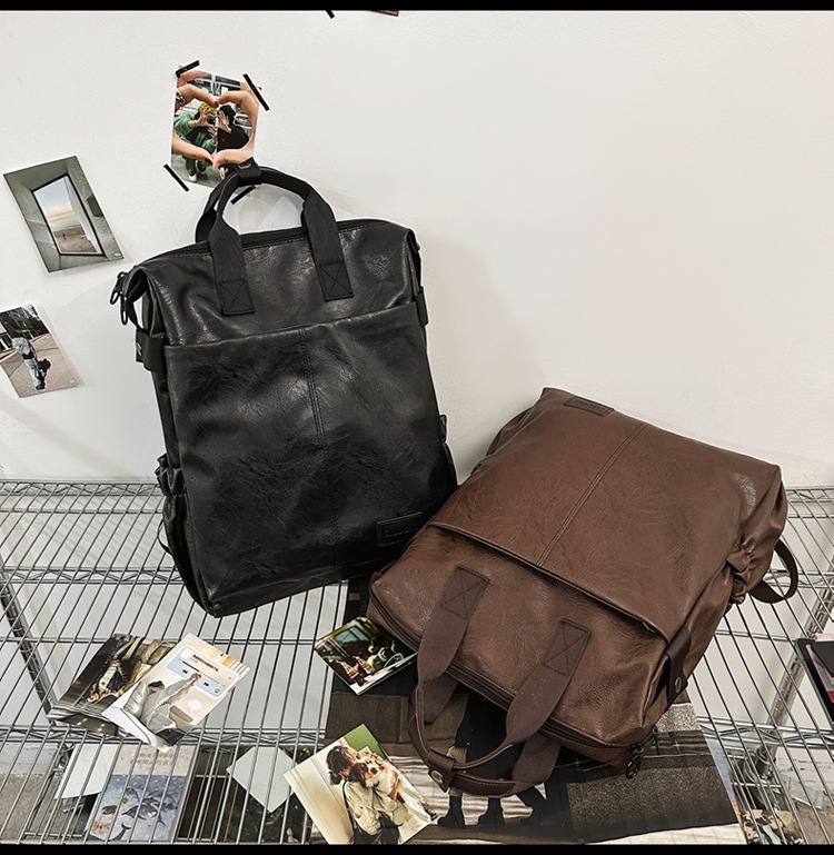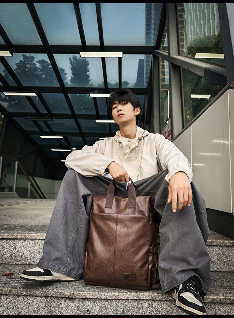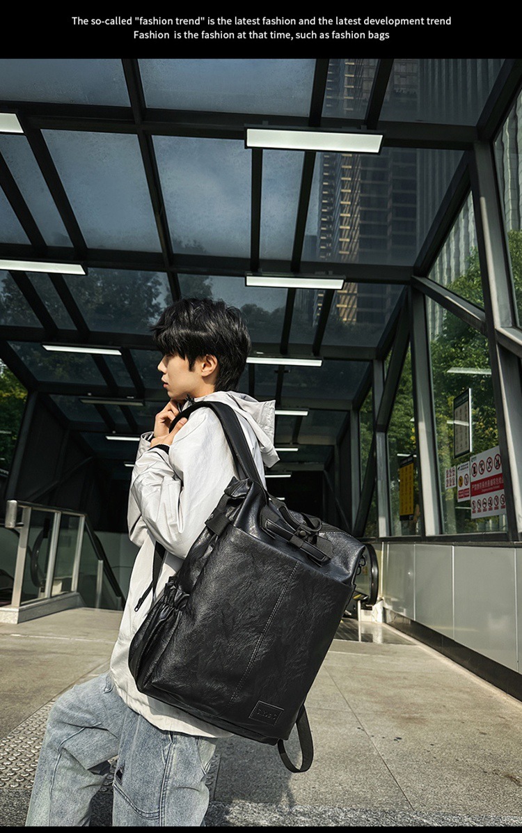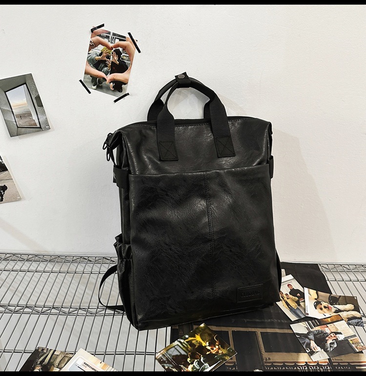 남자의 새로운 스타일 pu 가죽 배낭 유행 캐주얼 여행 휴대용 대학생 어깨 가방 대학 스타일 컴퓨터 학교 가방