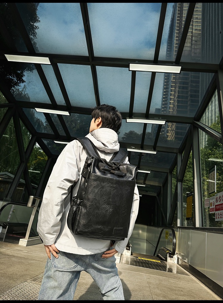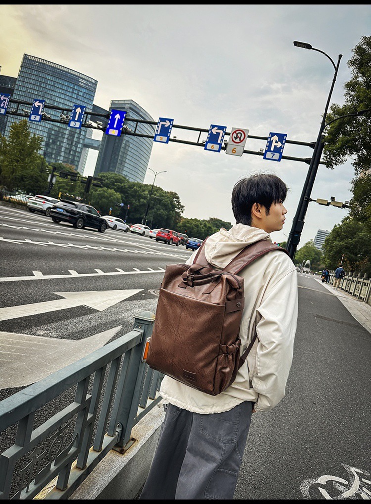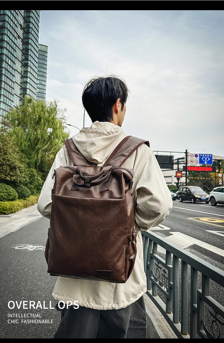 남자의 새로운 스타일 pu 가죽 배낭 유행 캐주얼 여행 휴대용 대학생 어깨 가방 대학 스타일 컴퓨터 학교 가방스토어 가기