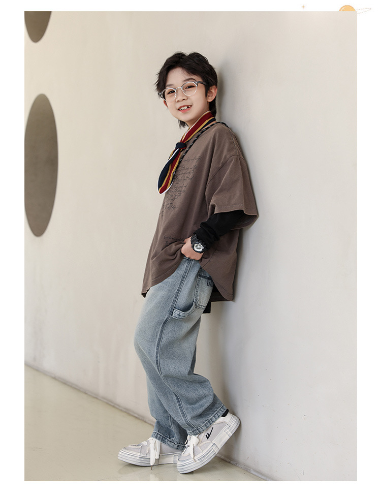 남아 바지 봄 가을 중대형 아동용 루즈핏 청바지 청소년 2026 신상 아동 남아 캐주얼 긴바지