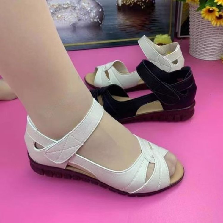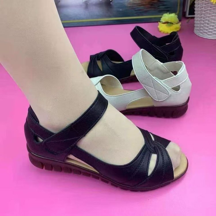 여름 어머니 샌들 여성 아웃웨어 캐주얼 부드러운 밑창 중년 및 노인 여성 신발 편평한 발 편안한 미끄럼 방지 여성용 샌들 서양식