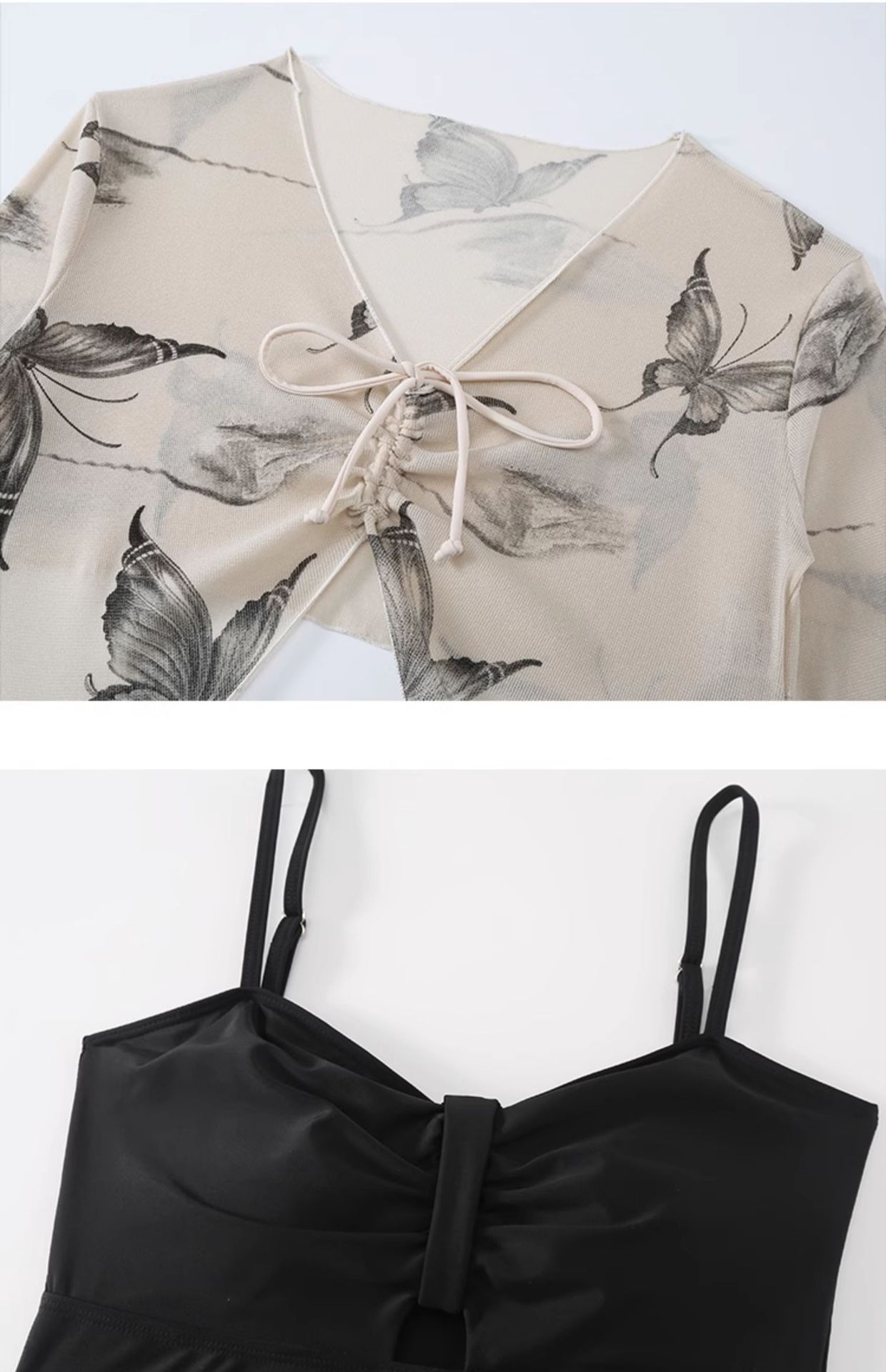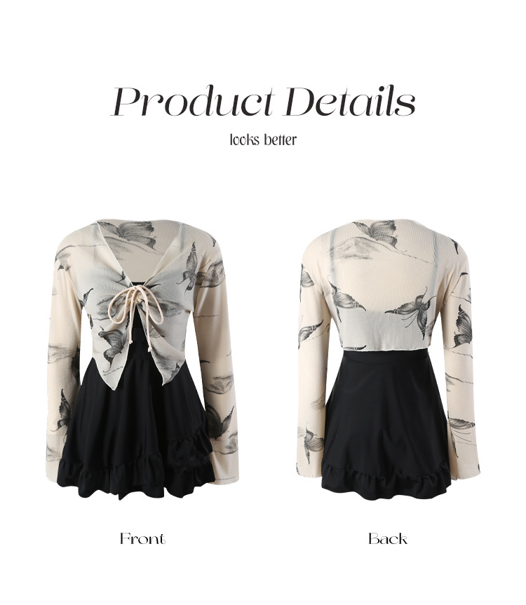 2025 새로운 플러스 사이즈 수영복 여성 원피스 보수적 인 약간 뚱뚱한 고기 나비 폭발 얇은 통통녀 수영복 긴 소매스토어 가기