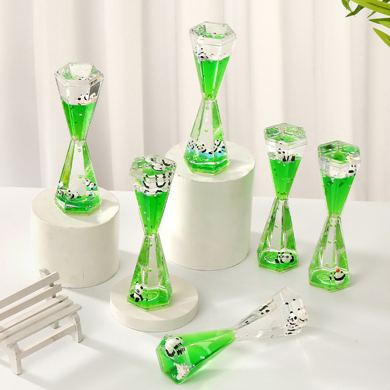 흔들리는 소리 폭발 팬더 떠 다니는 데스크탑 보석 기름 방울 소년 소녀 휴일 선물을위한 작은 장식품 기름 배수 모래 시계 도매