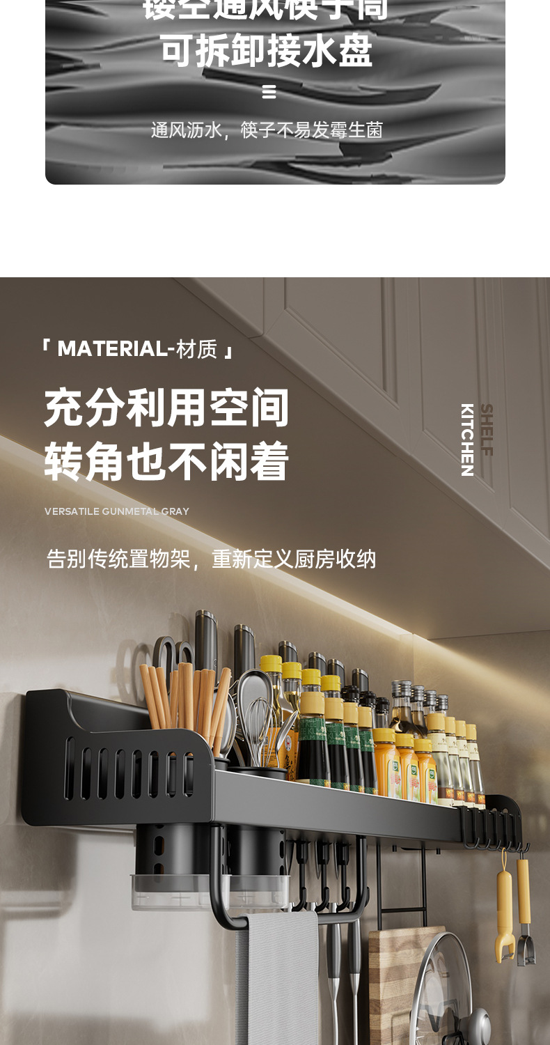 대외 무역 펀치가없는 주방 보관 랙 벽걸이 형 다기능 젓가락 나이프 가정용 조미료 보관