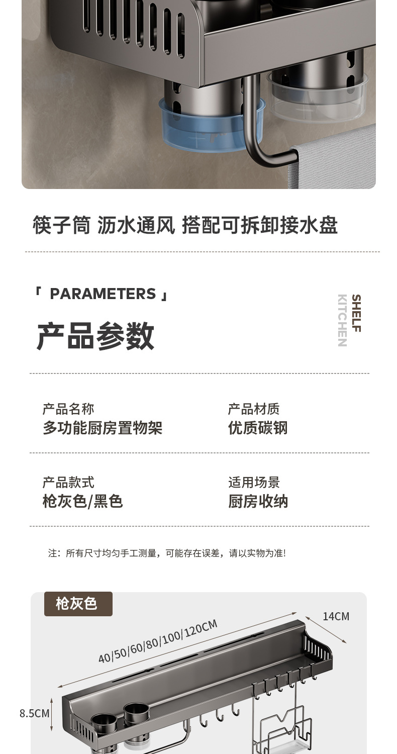 • 다기능 칼 홀더(건그레이) 50CM-더블 컵(냄비 뚜껑 홀더 포함)
