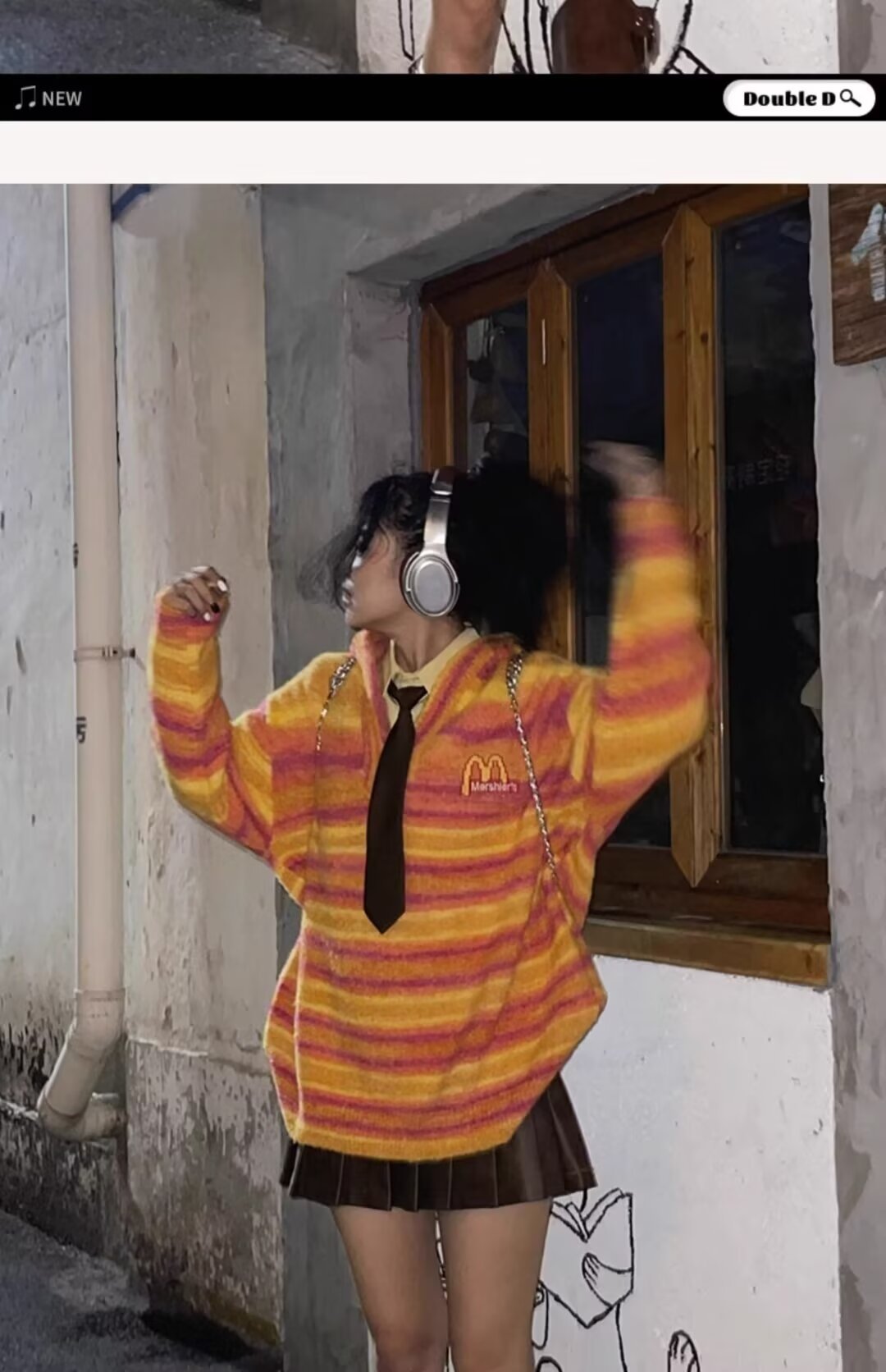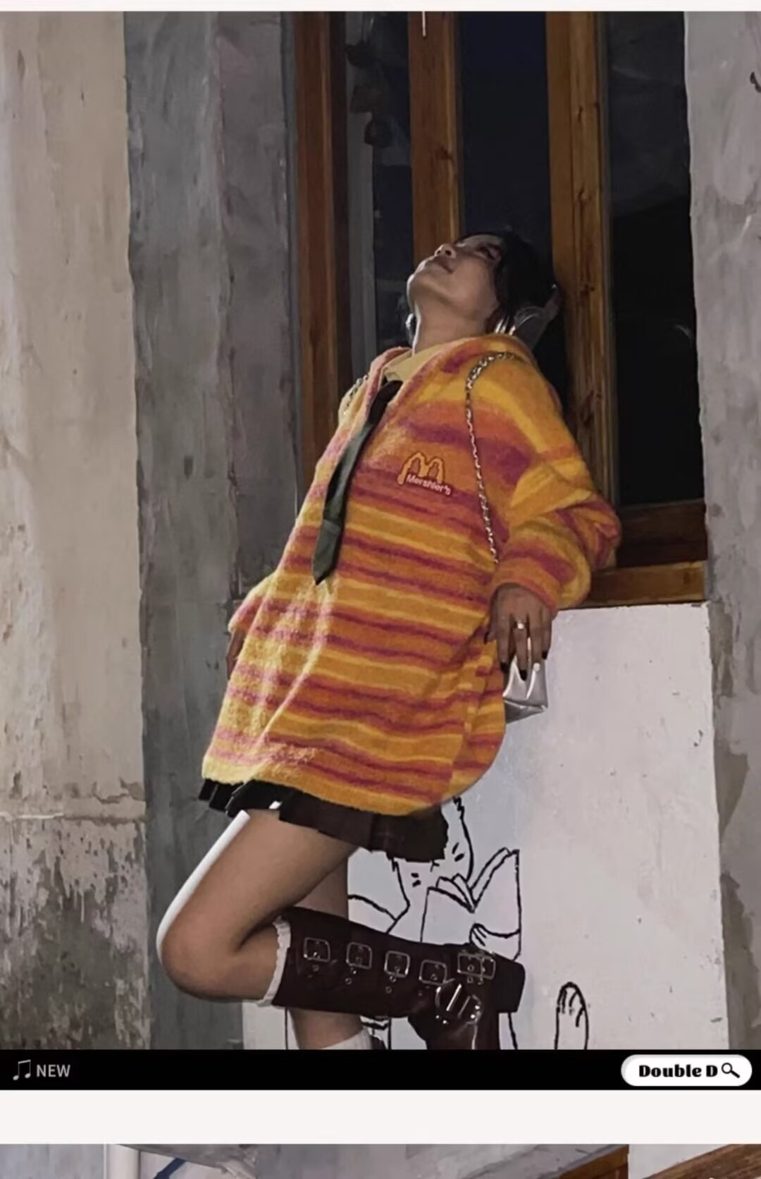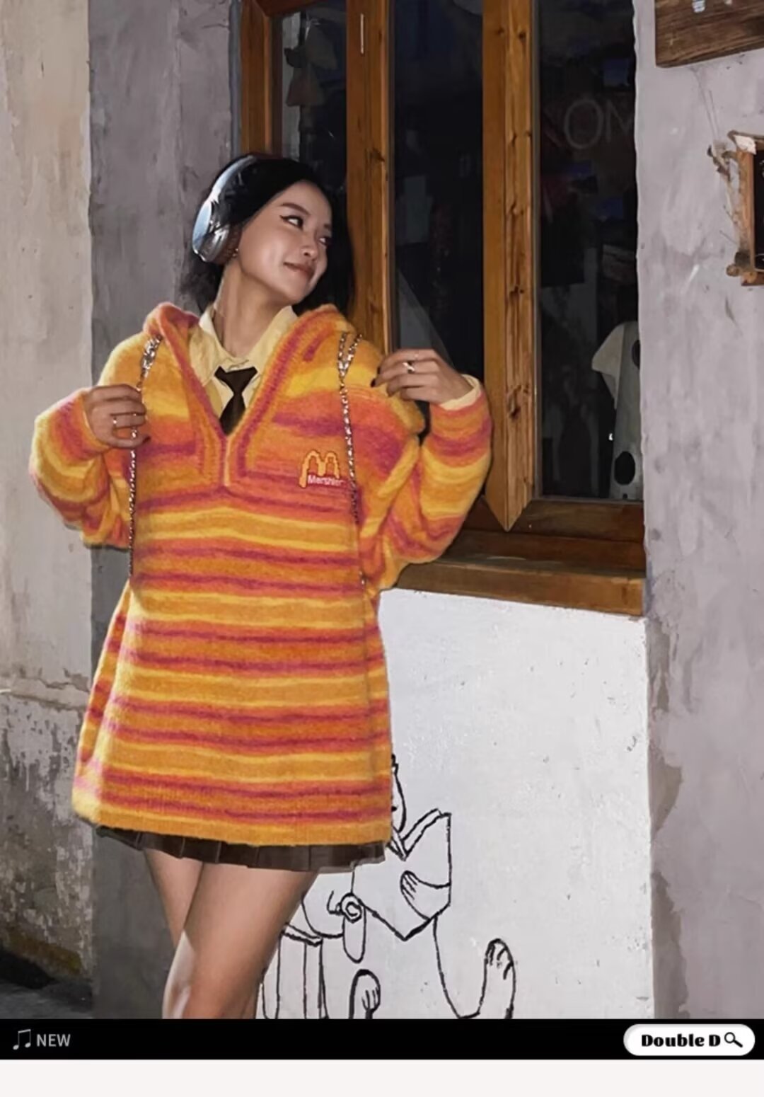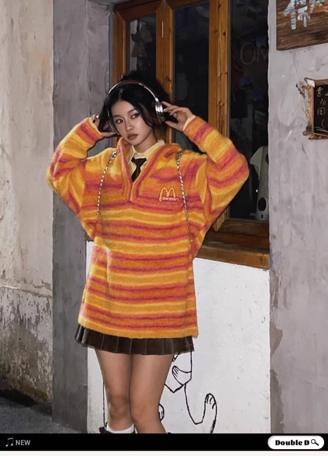 스웨터 남자 겨울 아우터 착용 게으른 감각 대비 컬러 스트라이프 패션 커플 니트웨어 후드 재킷 맥도날드의 자수