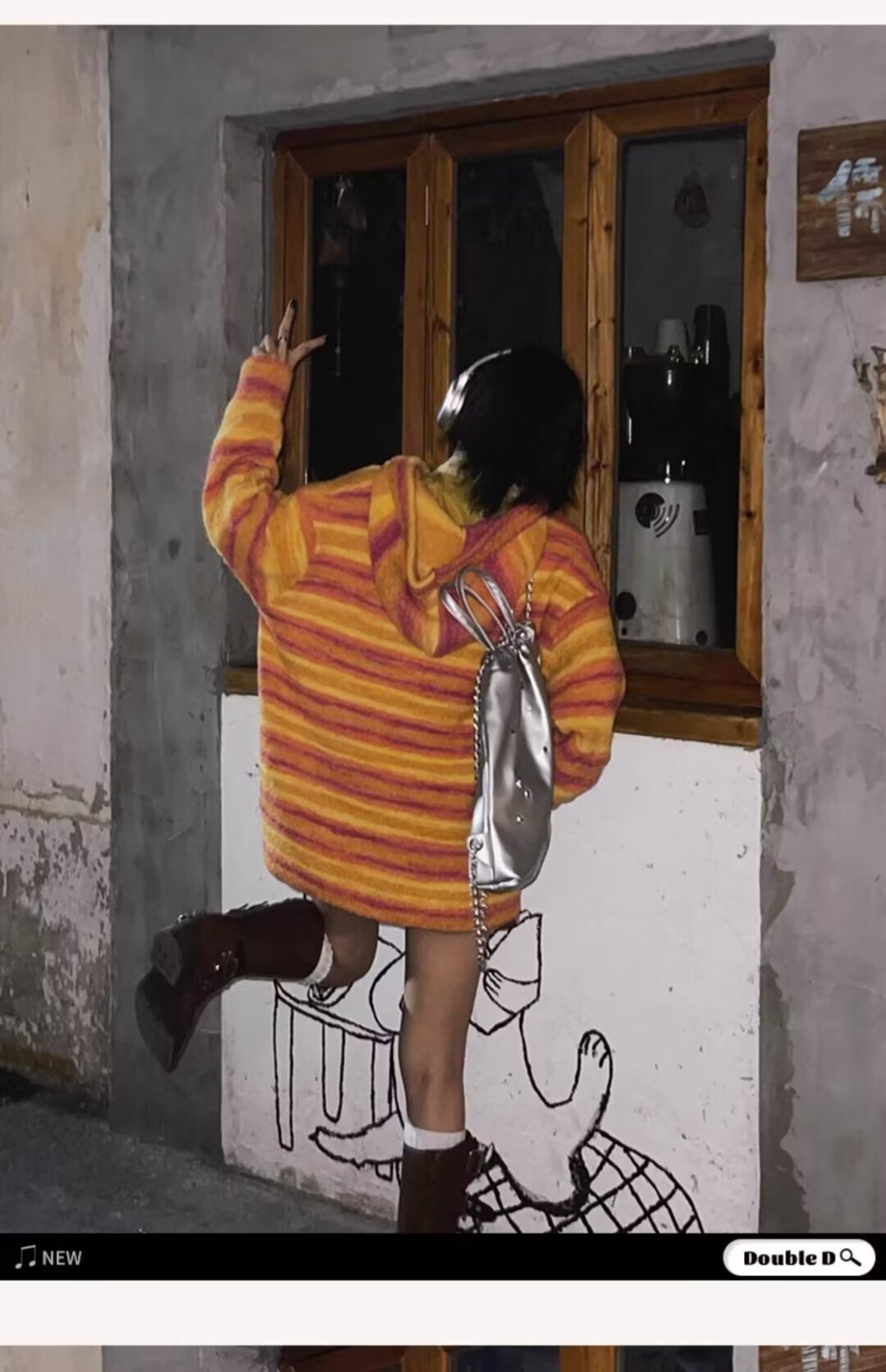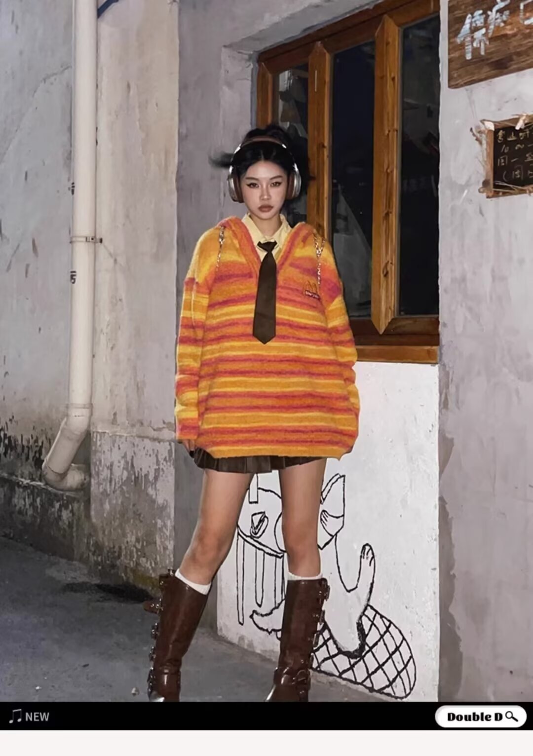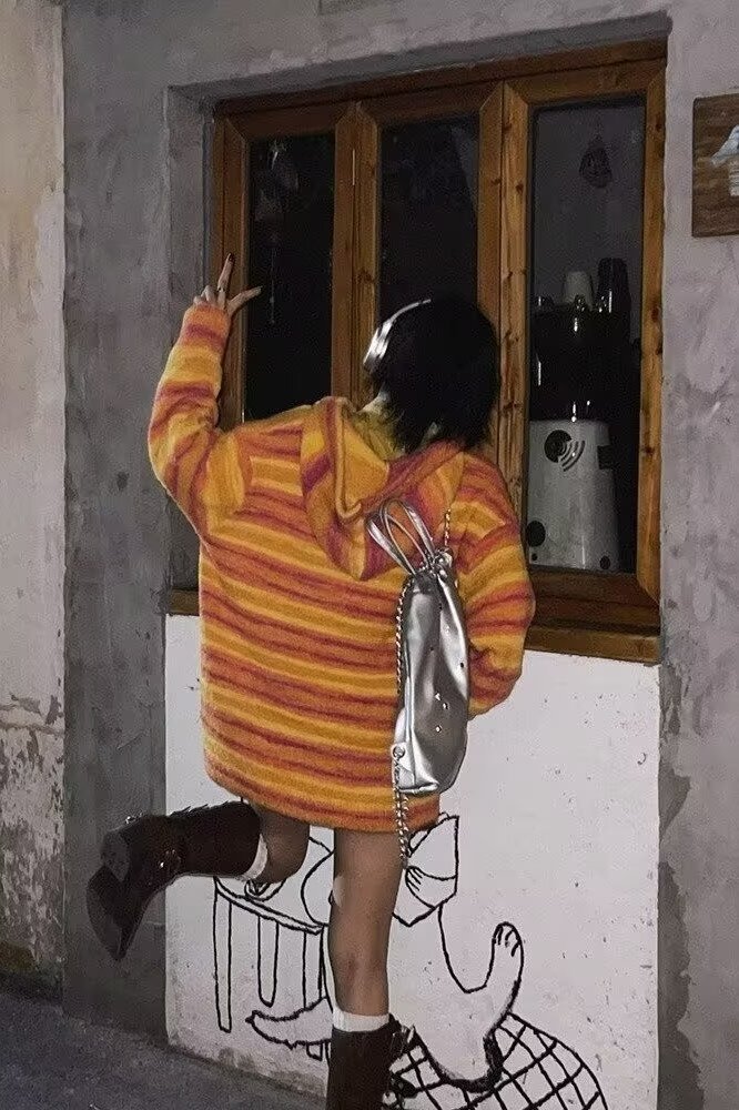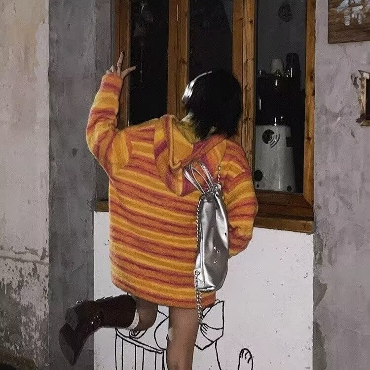 스웨터 남자 겨울 아우터 착용 게으른 감각 대비 컬러 스트라이프 패션 커플 니트웨어 후드 재킷 맥도날드의 자수스토어 가기