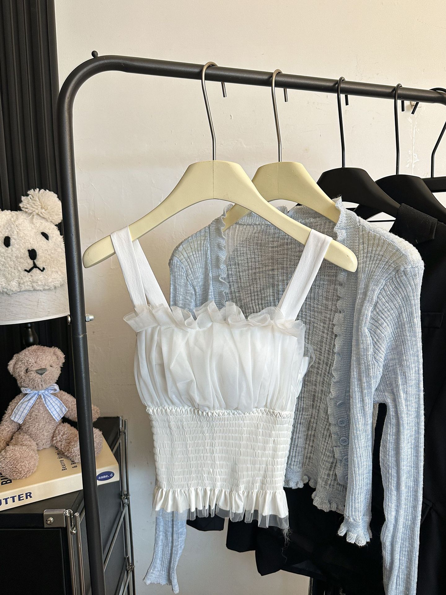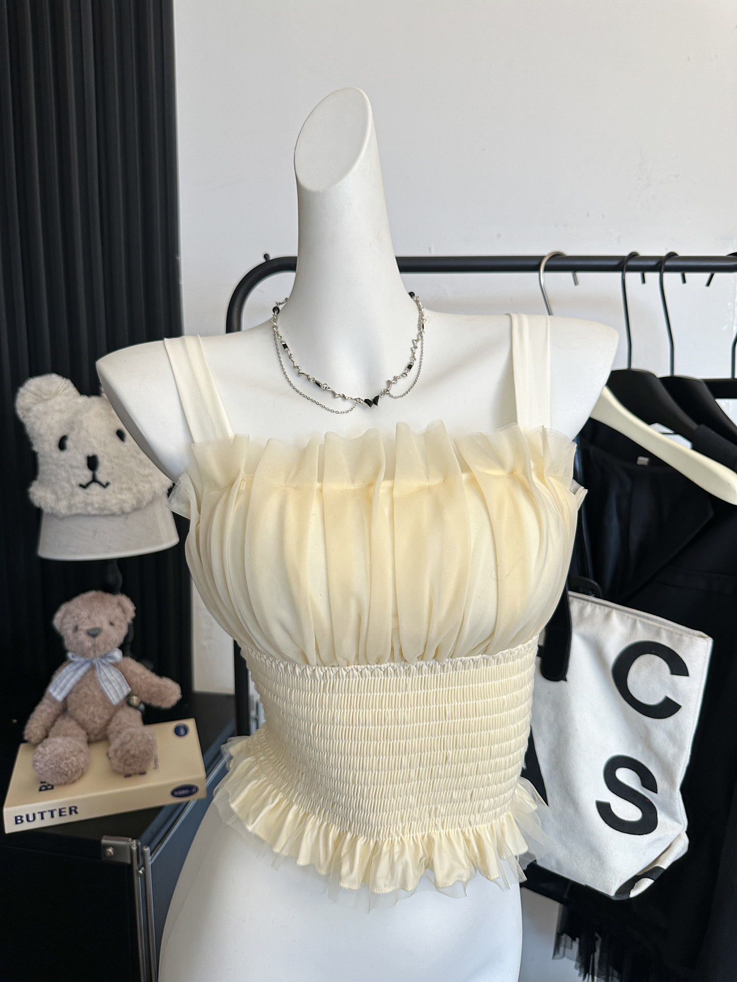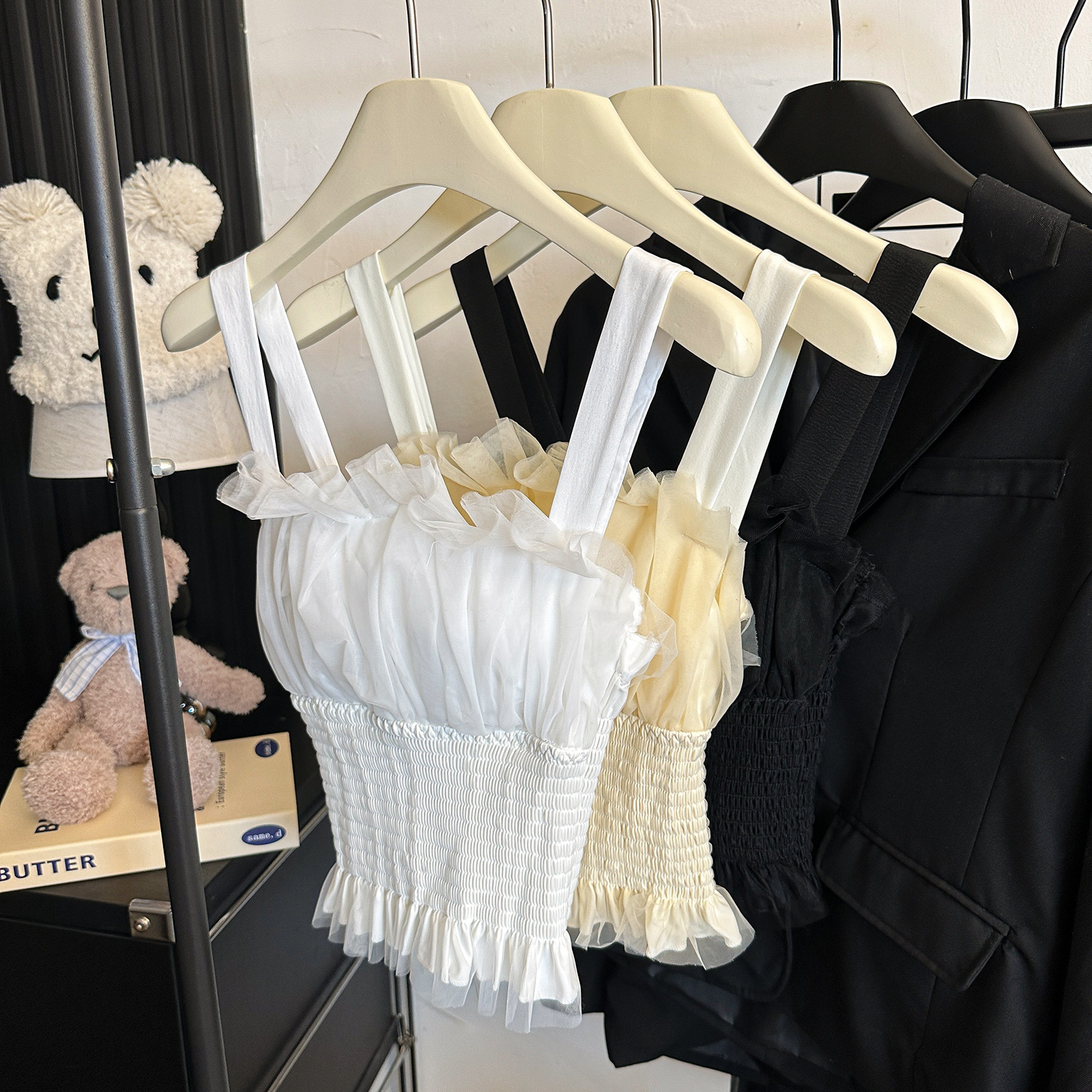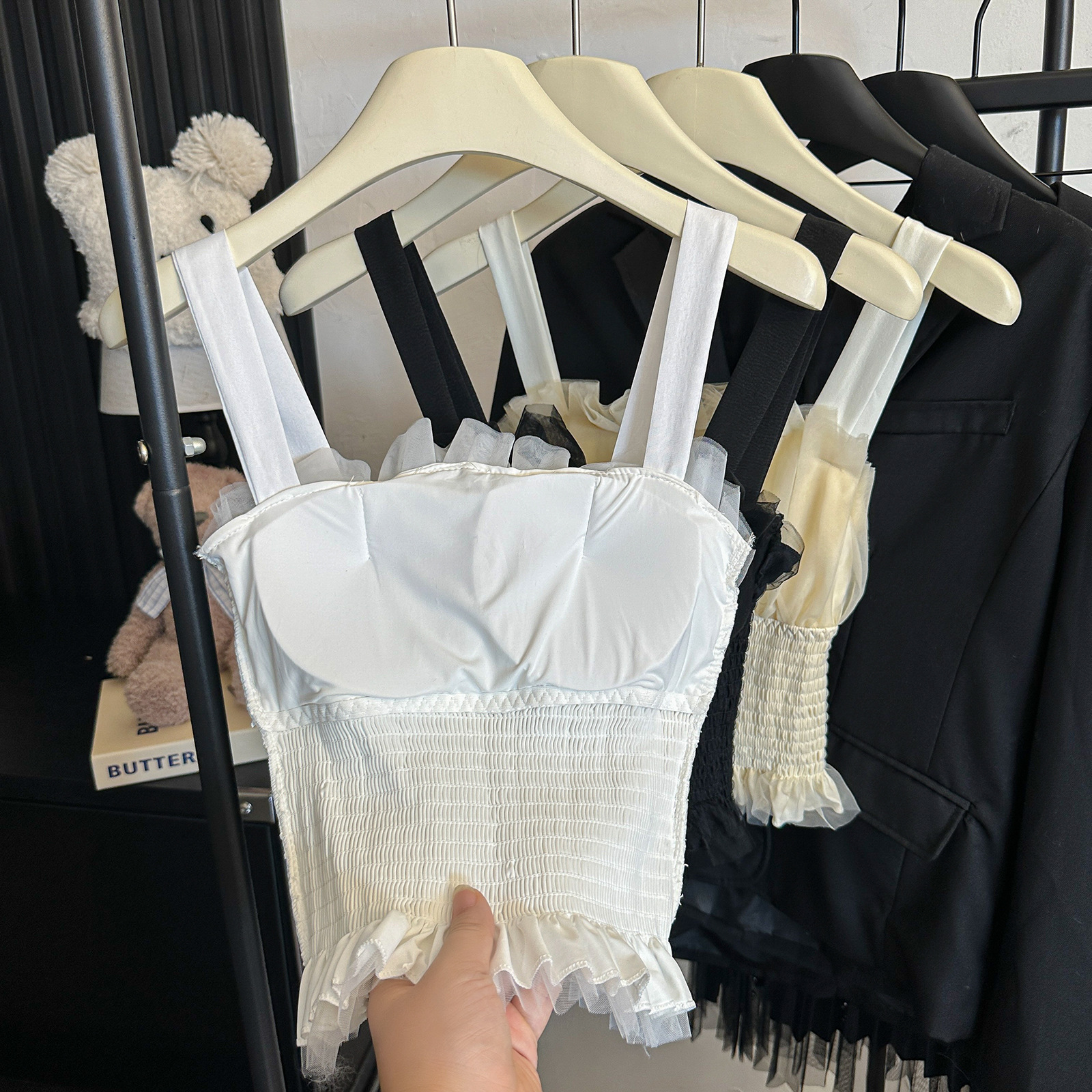 2216 # 새로운 프랑스 메쉬 디자인 센스 조끼, 가슴 패드 허리 탄성 높은 감각 내부 착용스토어 가기