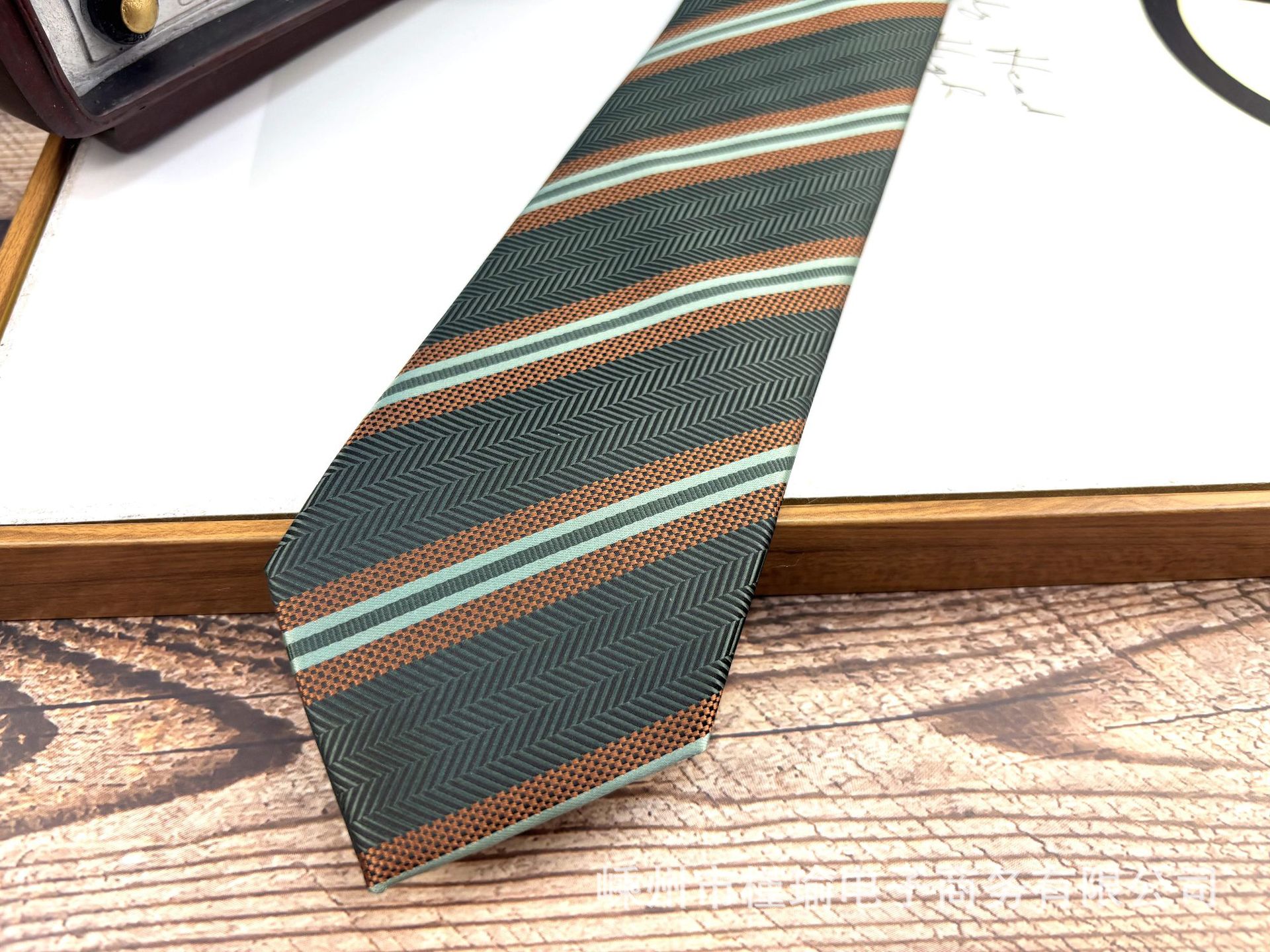 • H38 짙은 녹색 줄무늬 넥타이