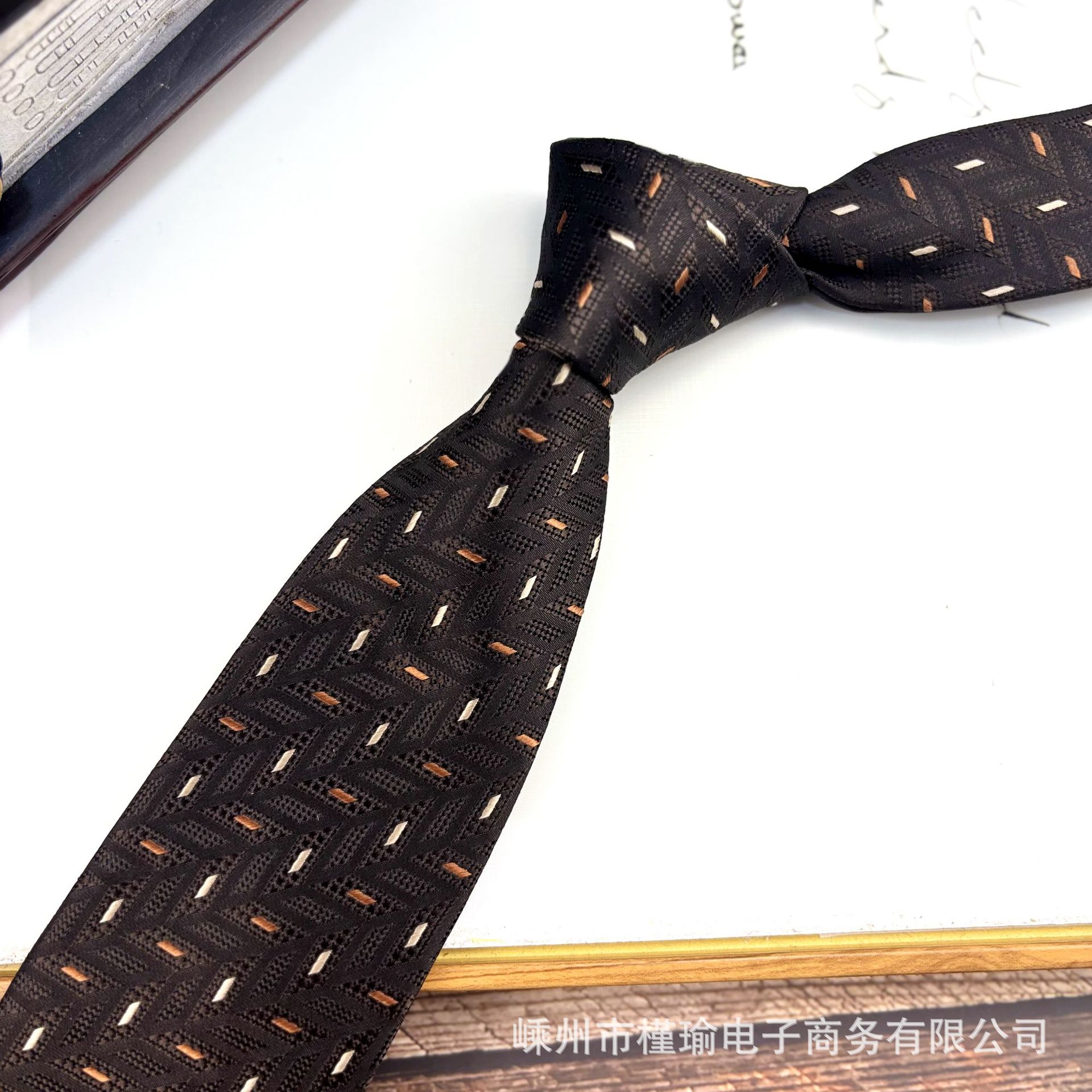 • H10 다크 커피 자카드 타이
