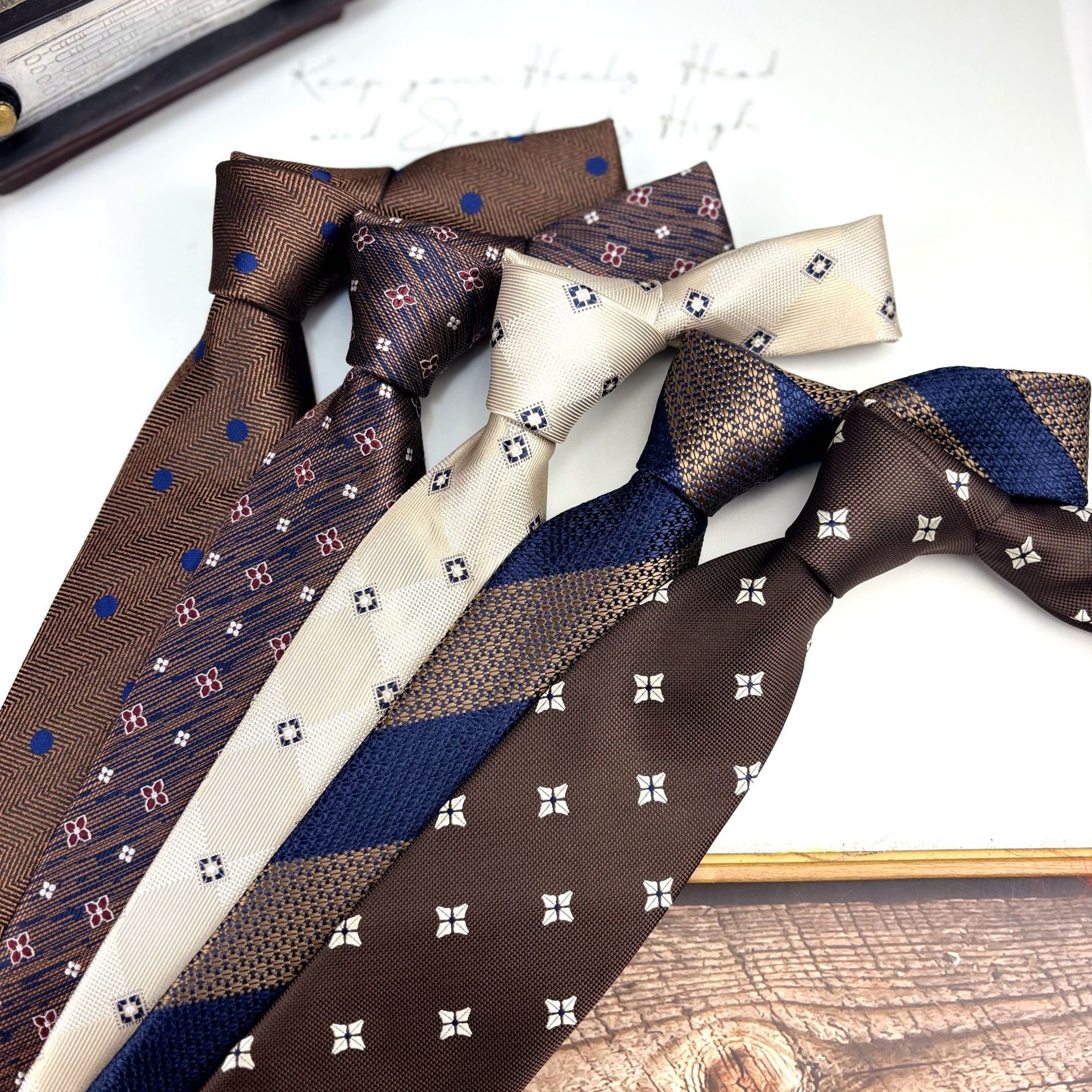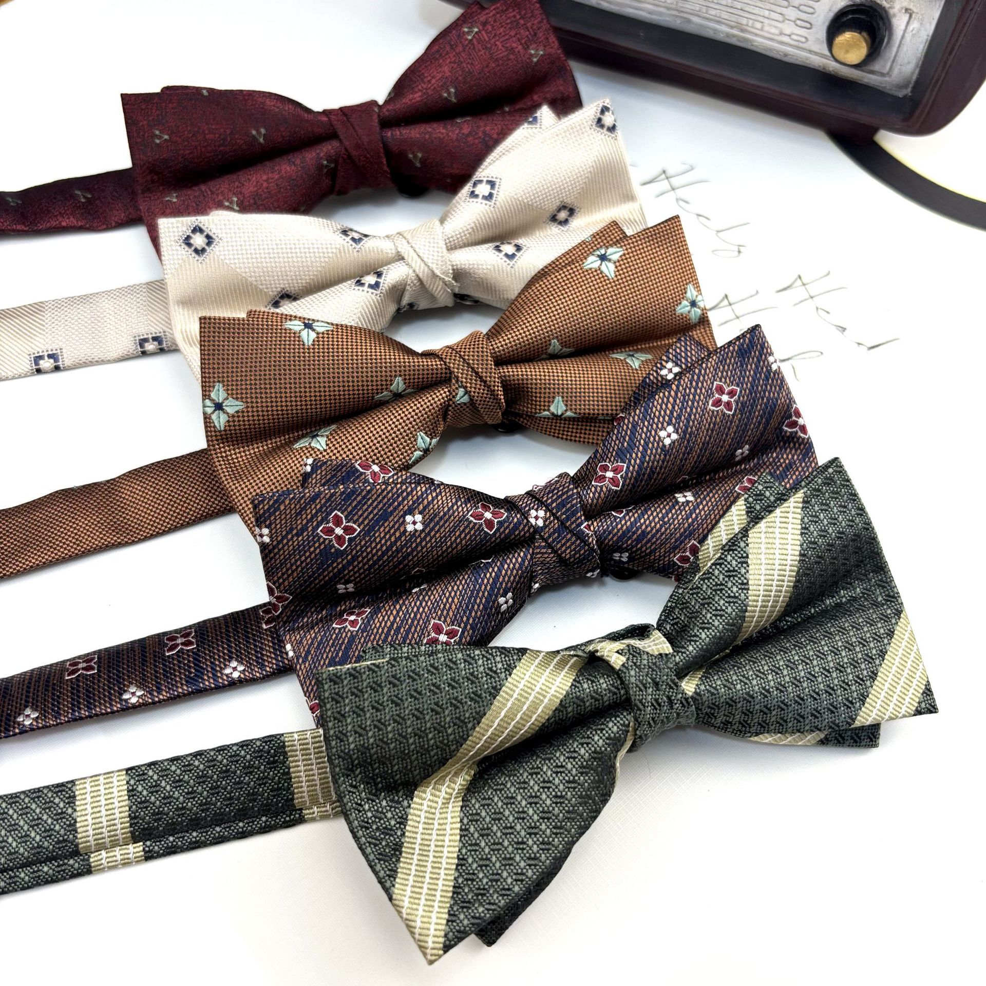빈티지 프랑스 스타일 남성 원피스 넥타이 전문 비즈니스 영국 입장 럭셔리 연회 웨딩 다크 브라운 다크 블루 화이트