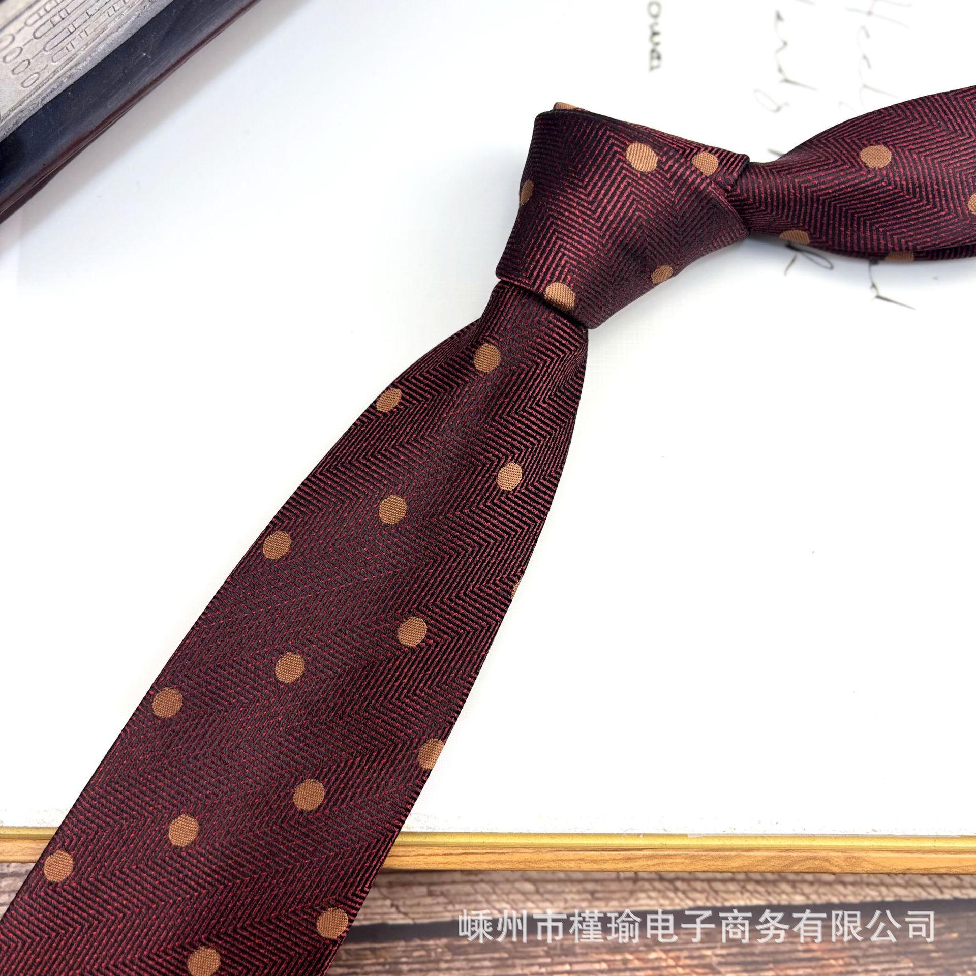 • H2 버건디 폴카 도트 타이