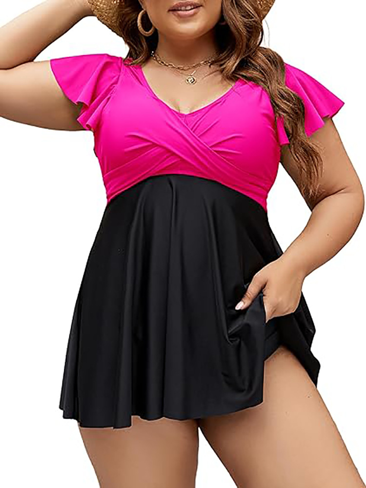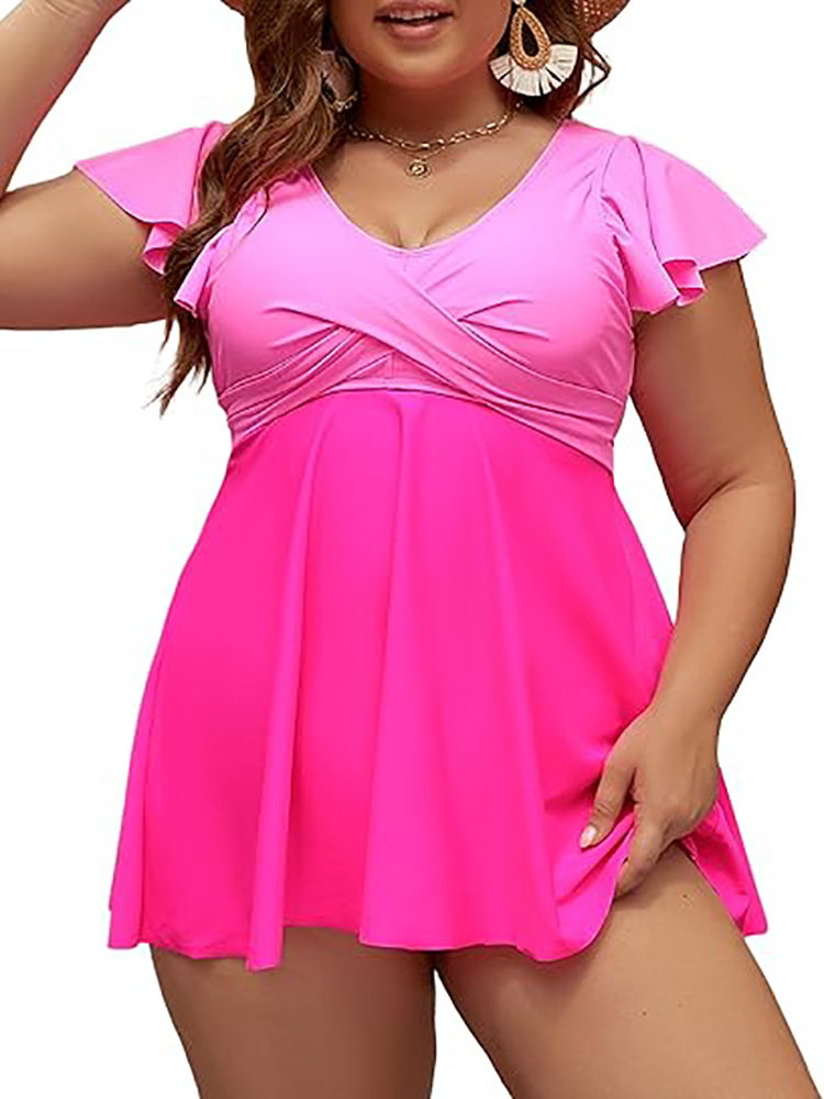 24 년 새로운 솔리드 컬러 v 넥 여성 드레스 플러스 사이즈 수영복 유럽과 미국의 국경 간 Amazon AliExpress