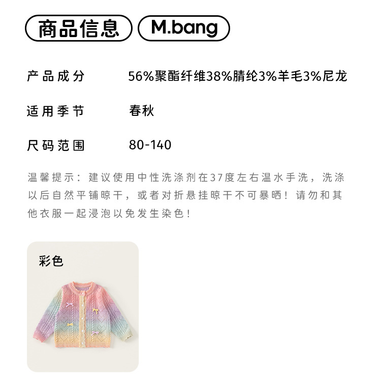 유바오 아동복 여아 스웨터 가을 그라데이션 컬러 니트웨어 2026 신상 중소형 아동 여아용 가디건 코트스토어 가기