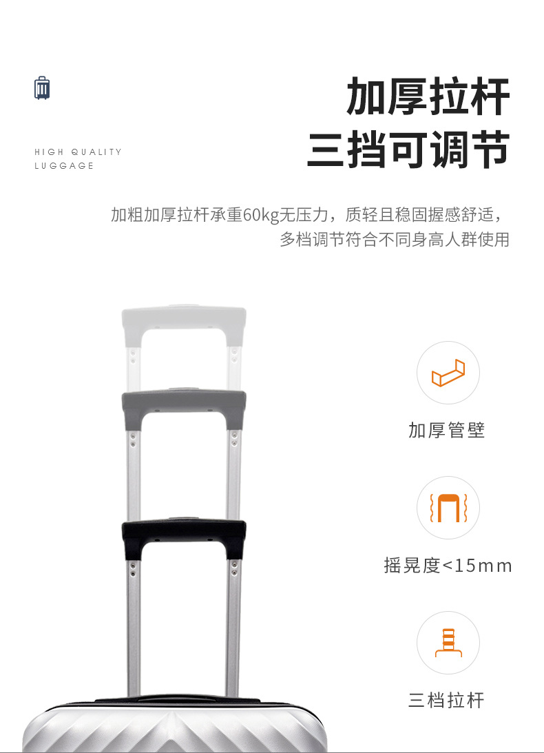 맞춤형 ABS 3 피스 트롤리 케이스 고급 감각 대용량 수하물 케이스 낙하 방지 두꺼운 지퍼 암호 상자
