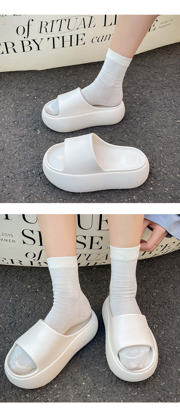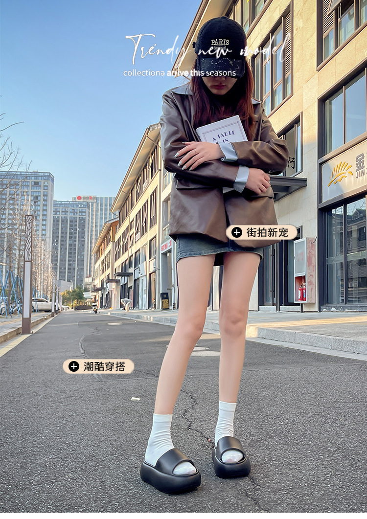 새로운 사이버 축하 부드러운 두꺼운 단색 슬라이드 여성 여름 해변 휴가 해변 미끄럼 방지 샌들스토어 가기