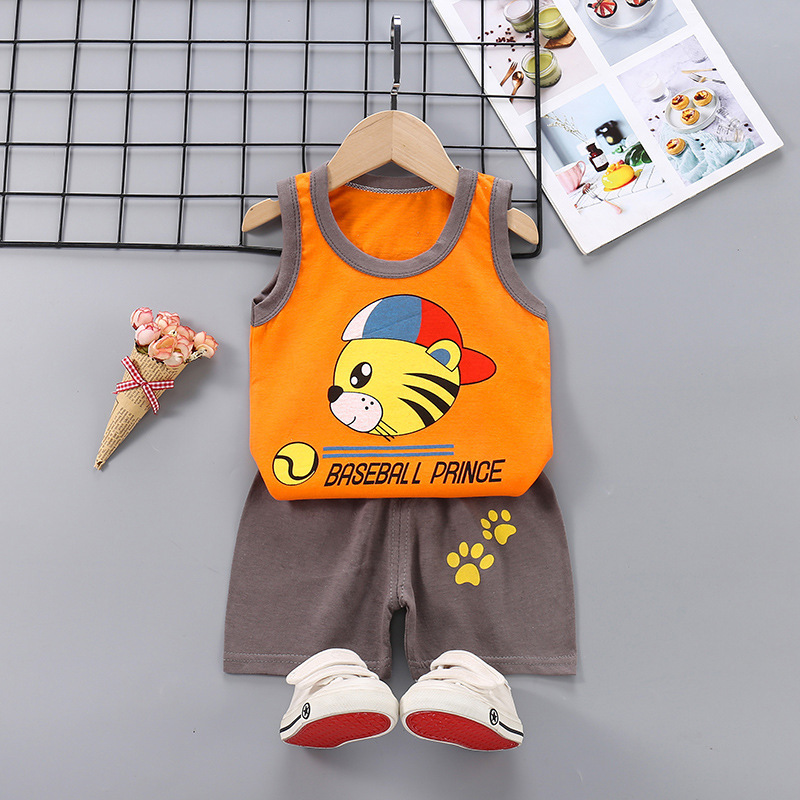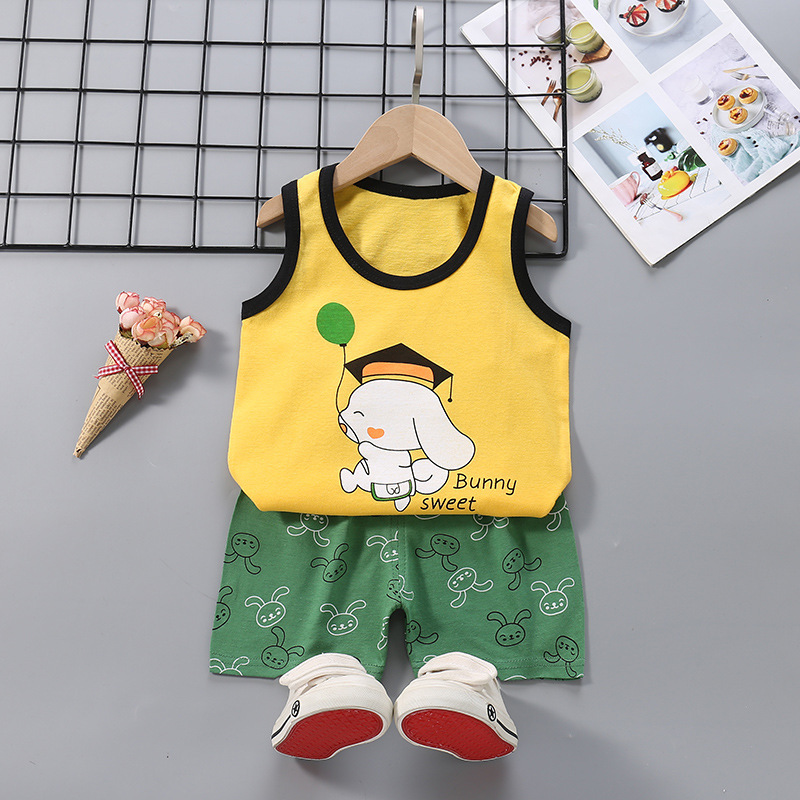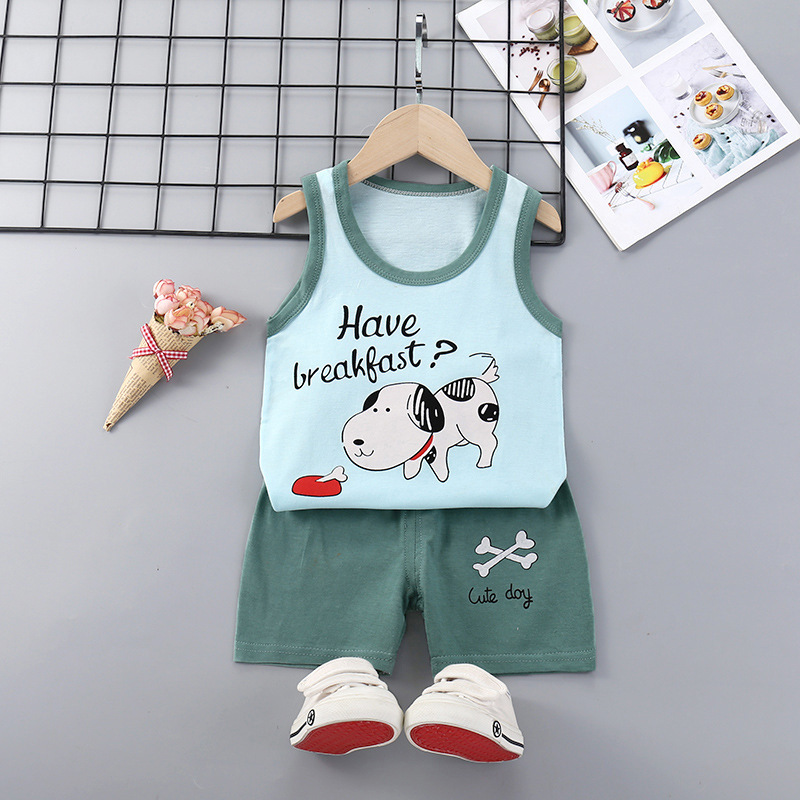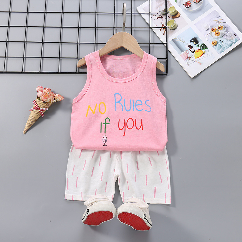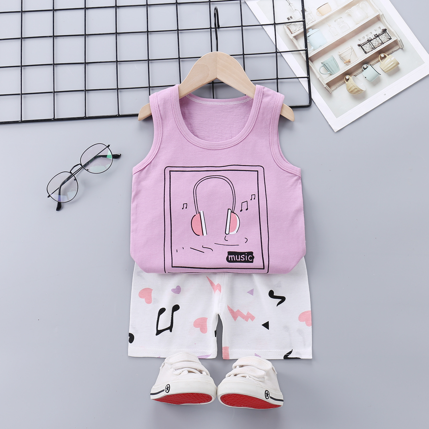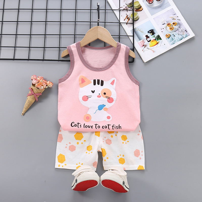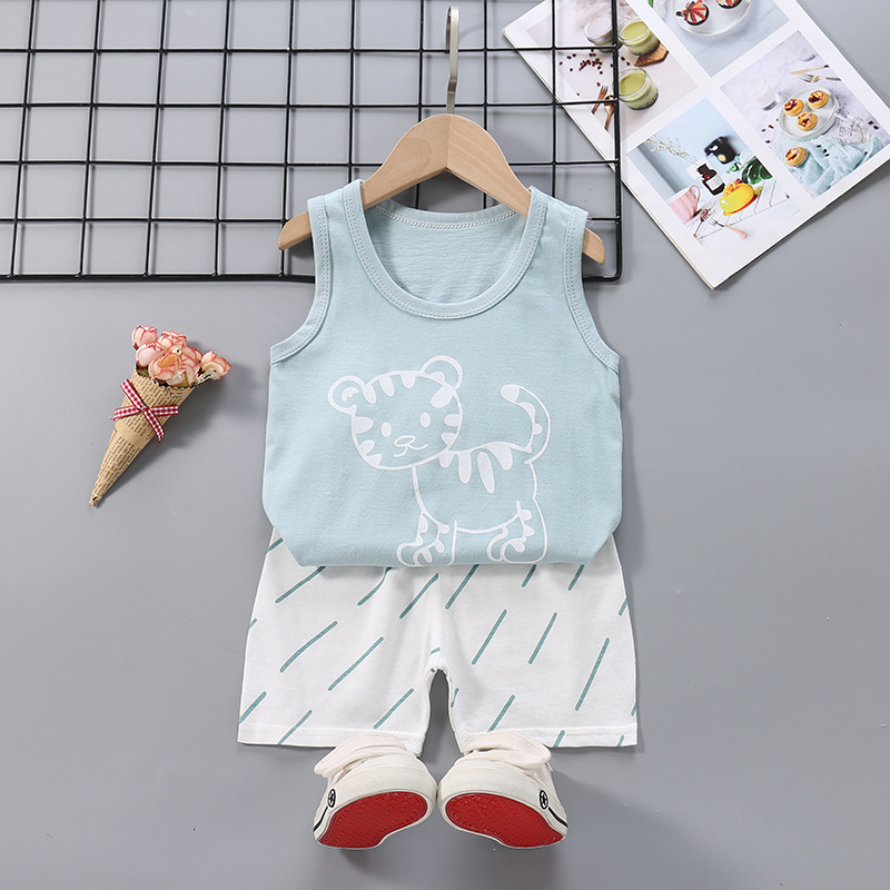 어린이 조끼 세트 소년 면화 민소매 여름 새 소녀 멜빵 반바지 유아면 아동복 도매