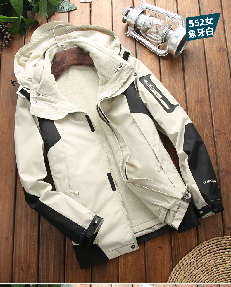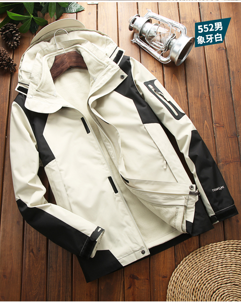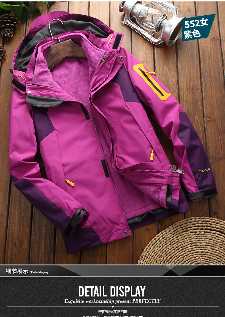 552 가을 겨울 남녀 투피스 세트 3 대 1 야외 방수 방풍 코트 플러스 사이즈 커플 패션