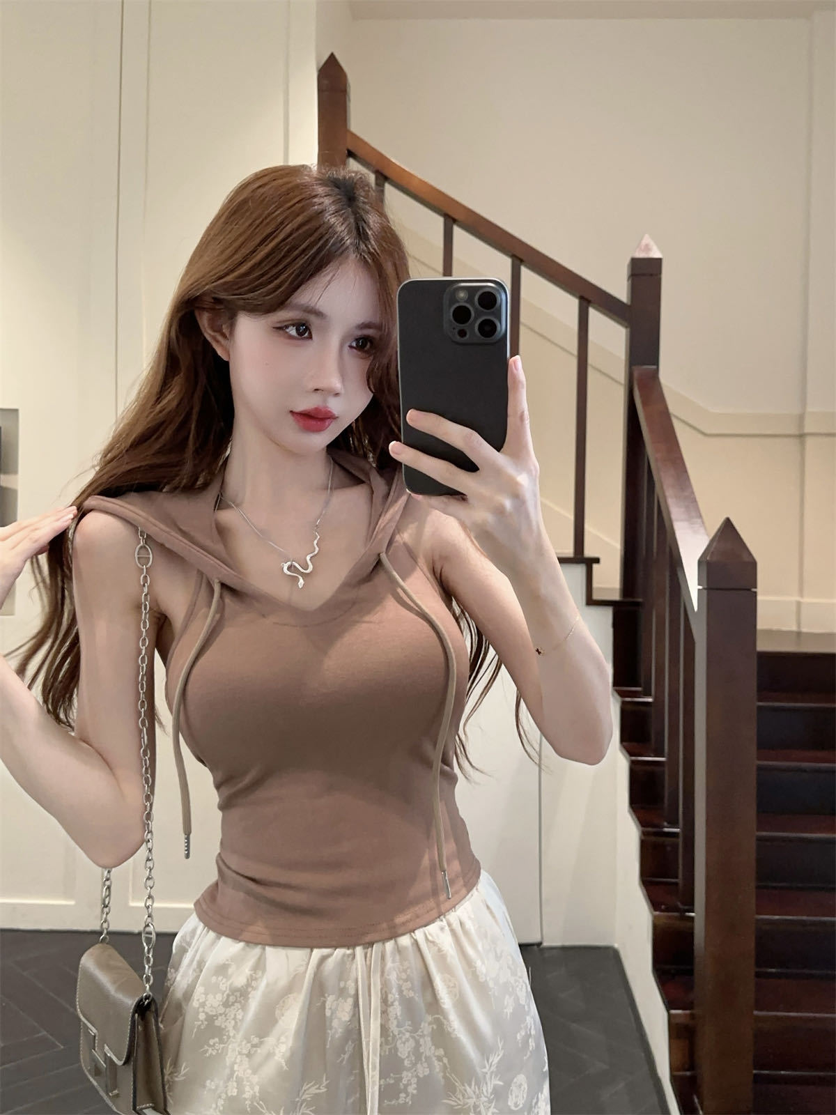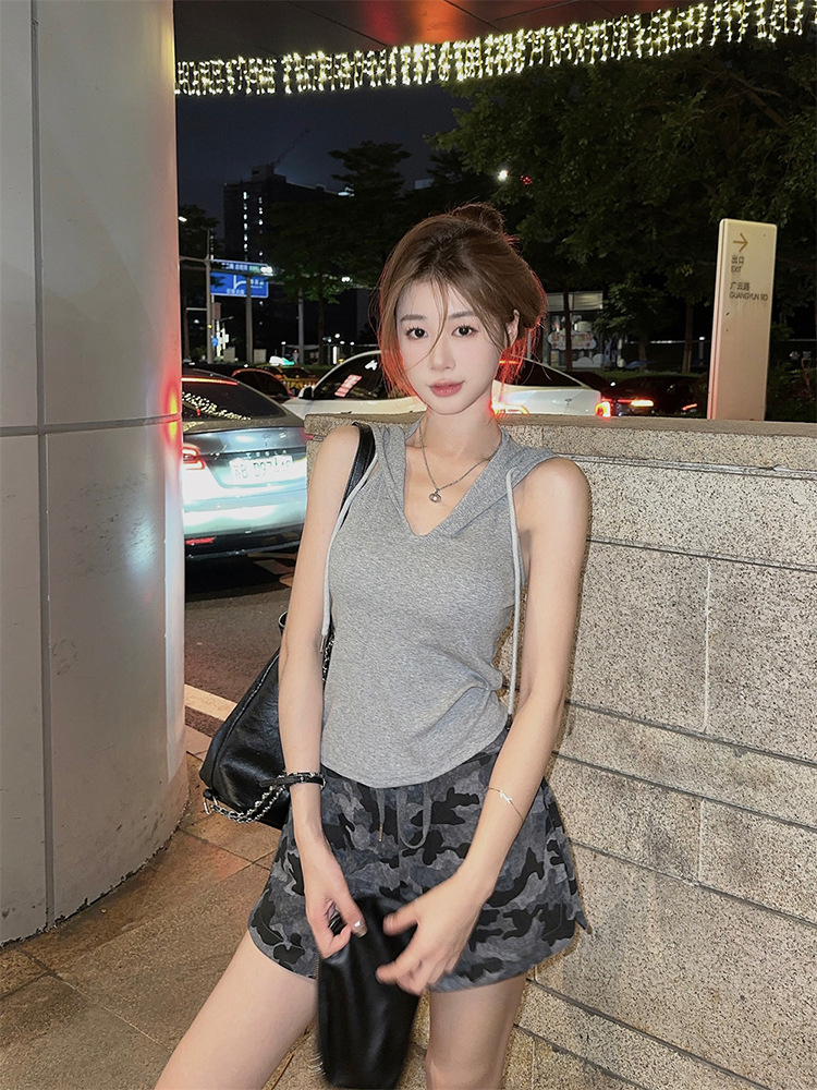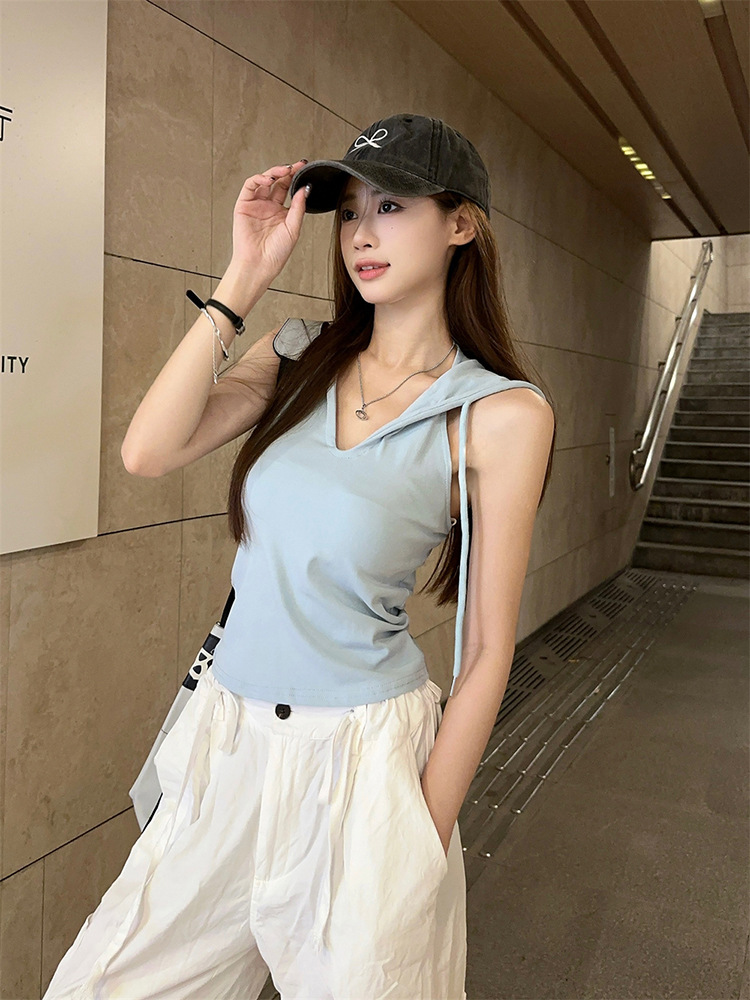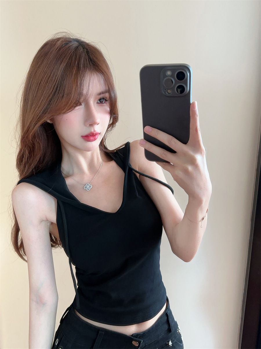 퓨어 스파이스 걸 미국식 후드 카미솔 여성용 여름 새 스타일 민소매 트렌디탑 가슴 패드 아우터웨어스토어 가기