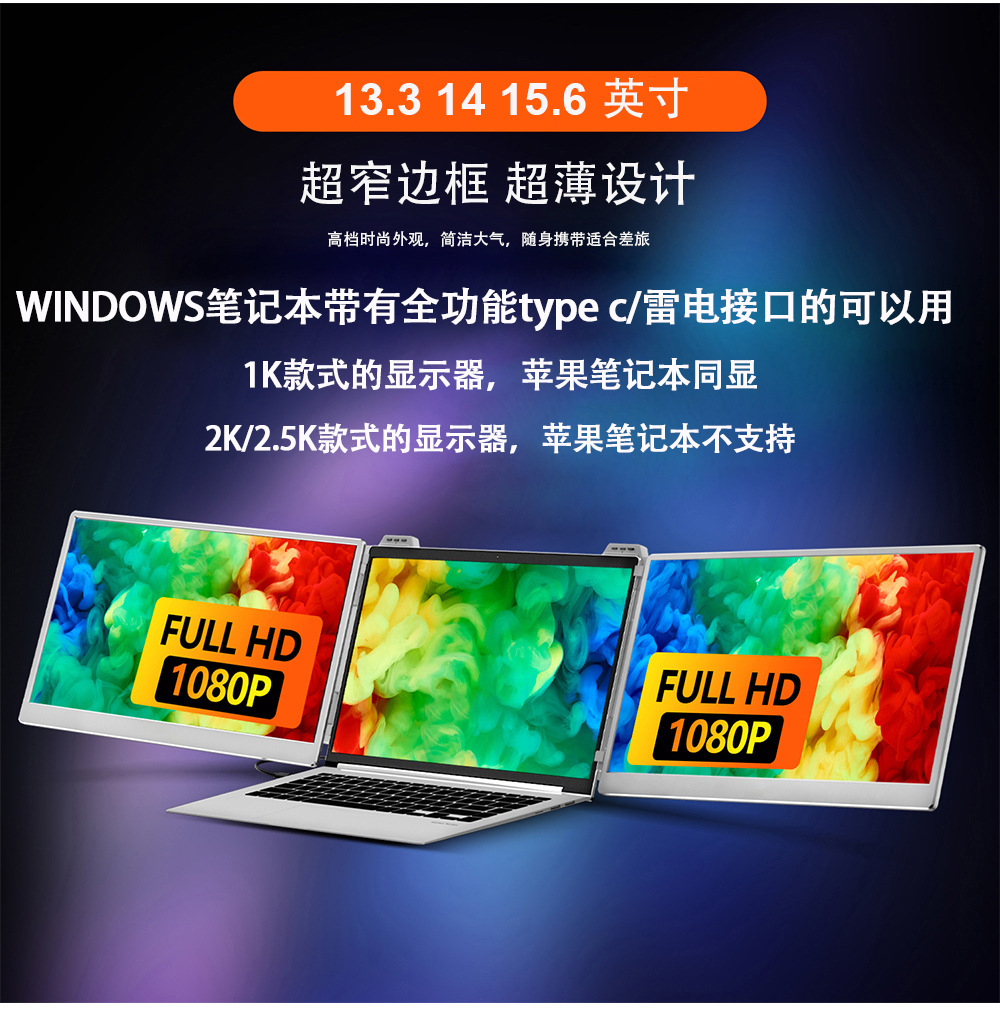 • 13.3inch 듀얼 스크린 1080P HD TYPE C 인터페이스는 Apple을 지원하지 않습니다.