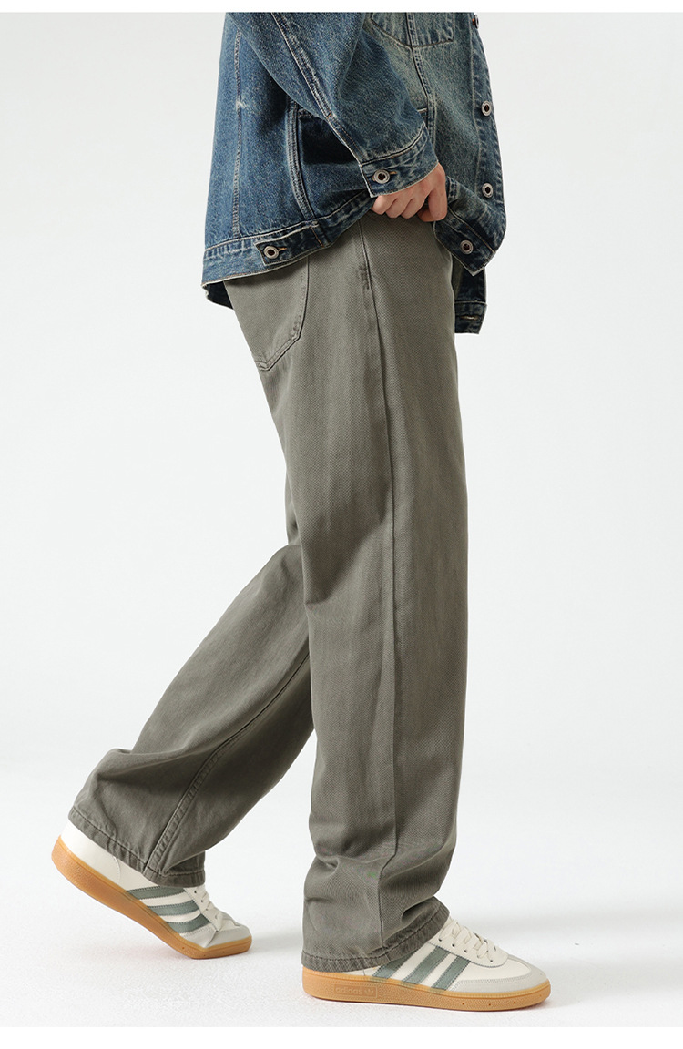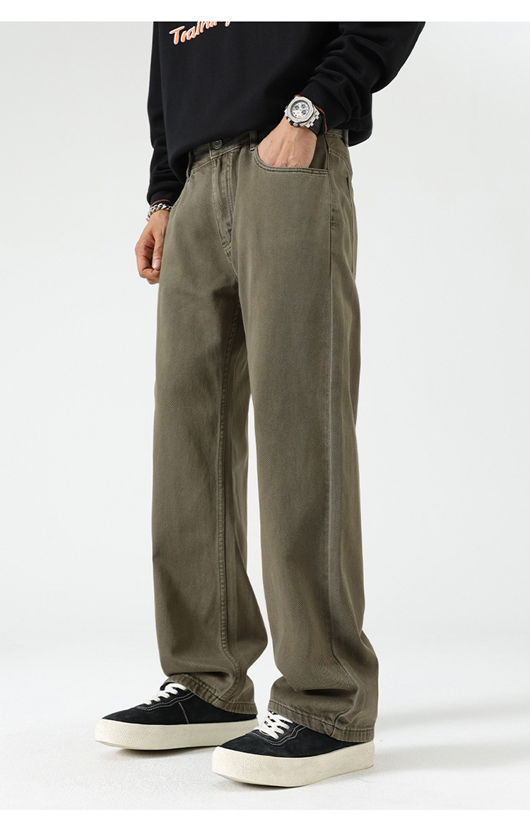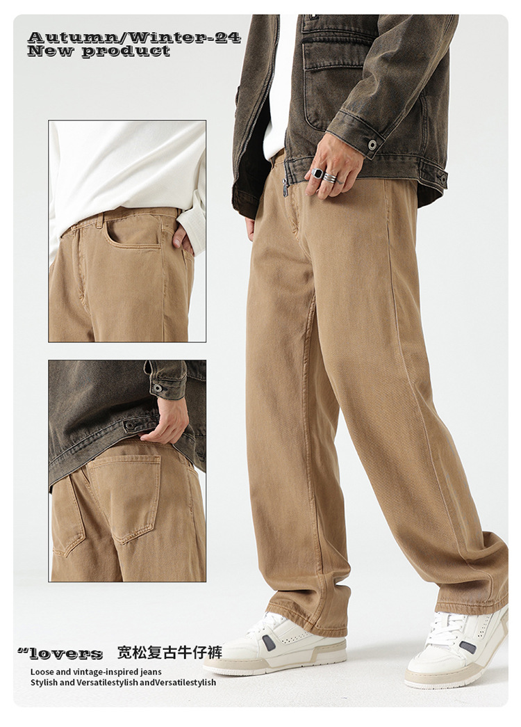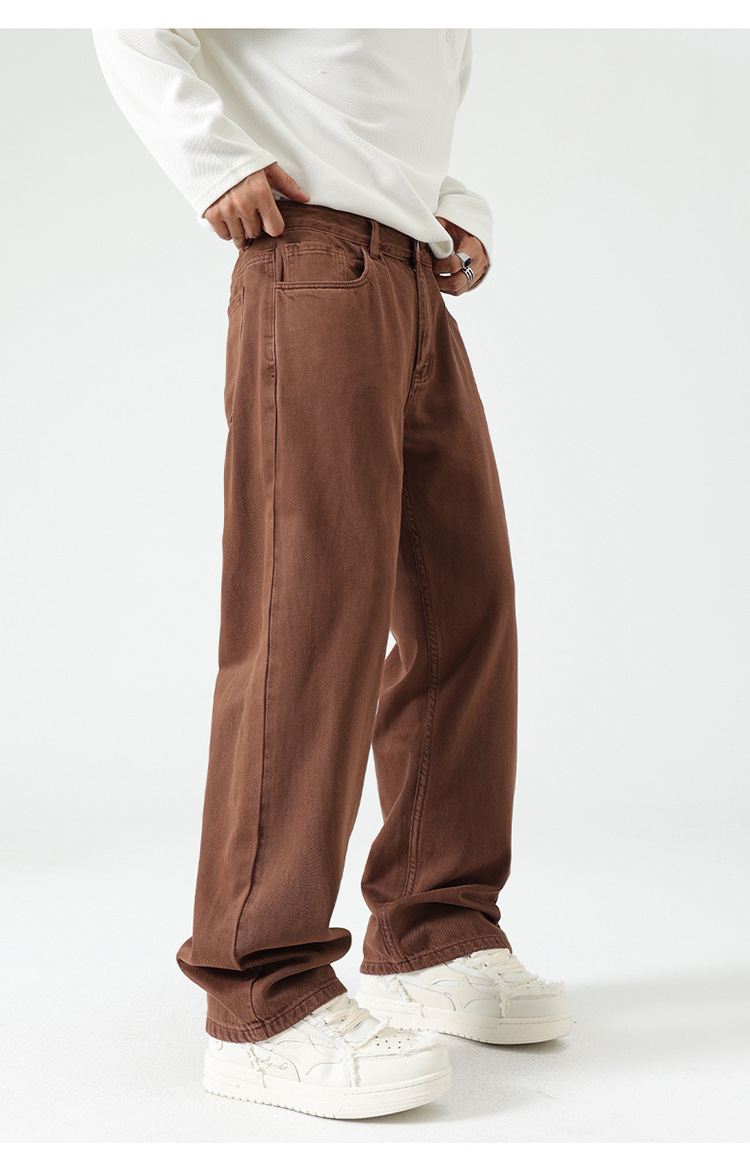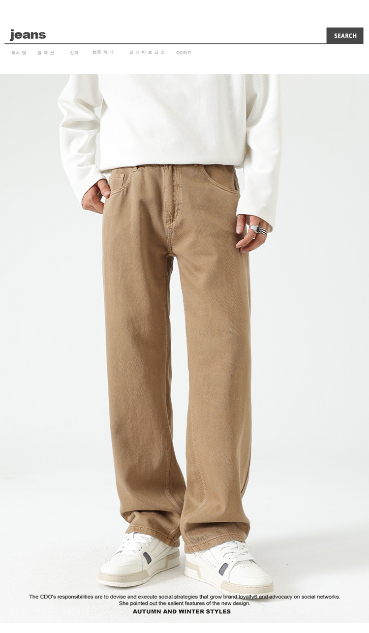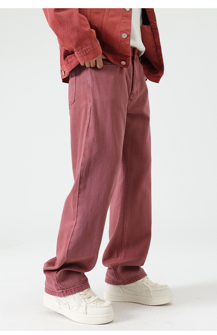 남자 아메리칸 도파민 컬러 세탁 레트로 바지 스트레이트 기본 올 매치 바지 단순 청바지 올매치