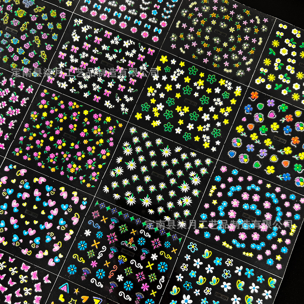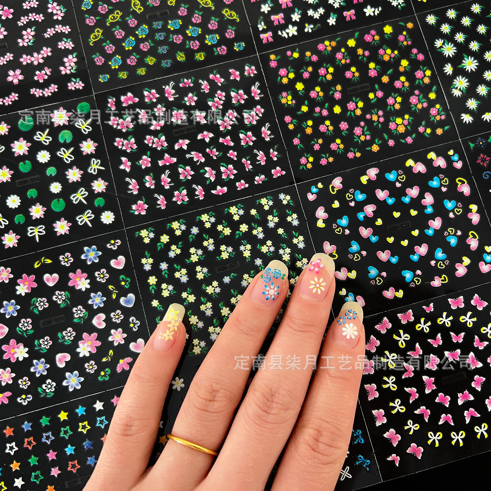아마존 인기 흑백 꽃무늬 네일 스티커 반짝이 일본풍 꽃 하트 별 네일 스티커스토어 가기