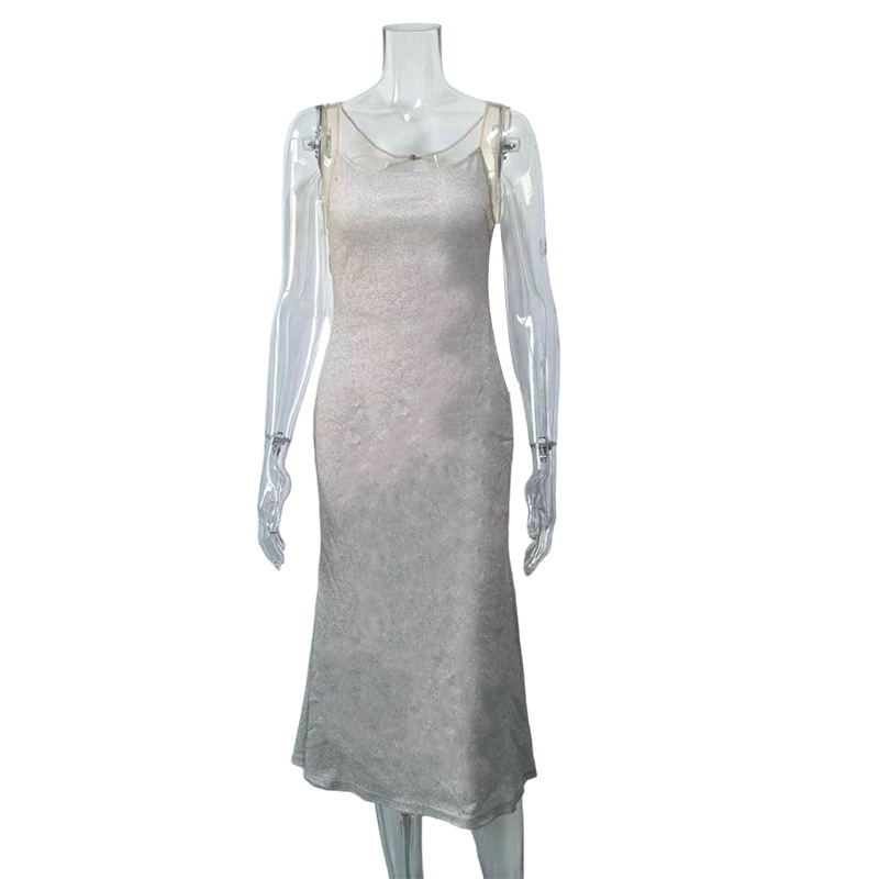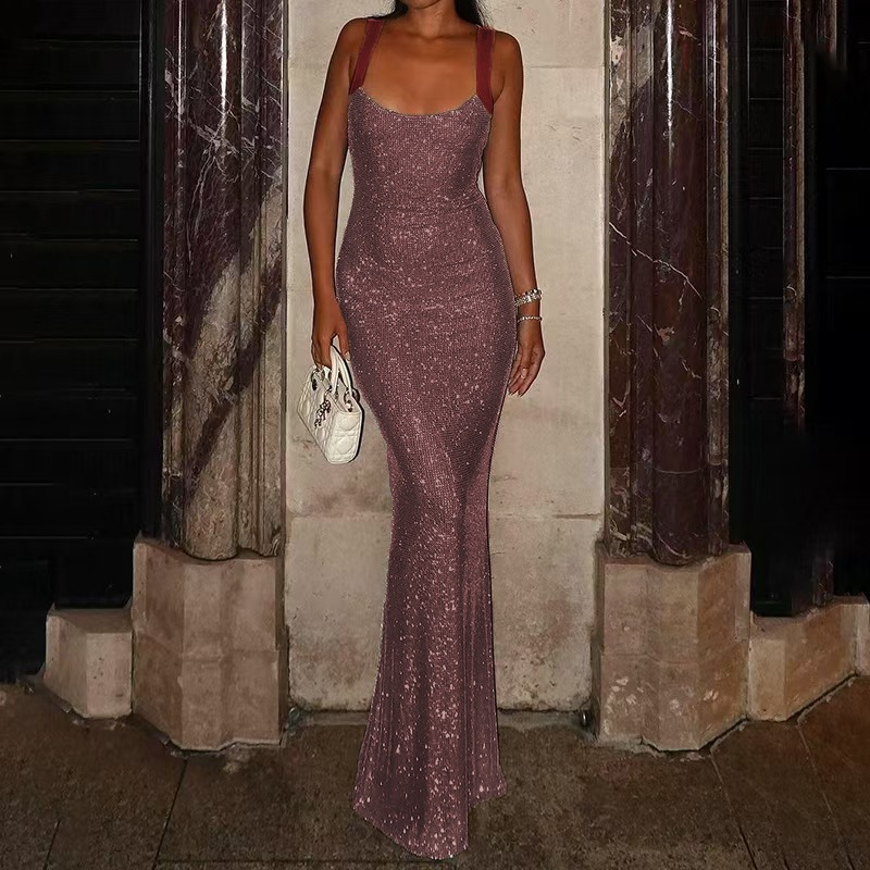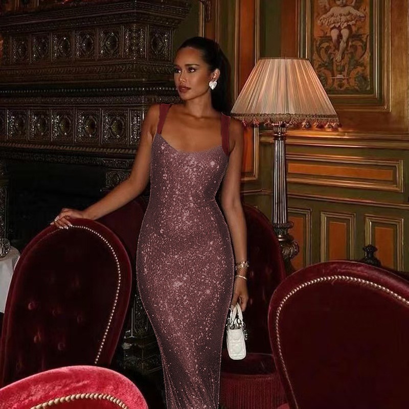 유럽과 미국의 디자인 감각 반짝이는 기질 멜빵 원피스 여성 사교계 스타일 패션 섹시한 슬림 엉덩이 원피스