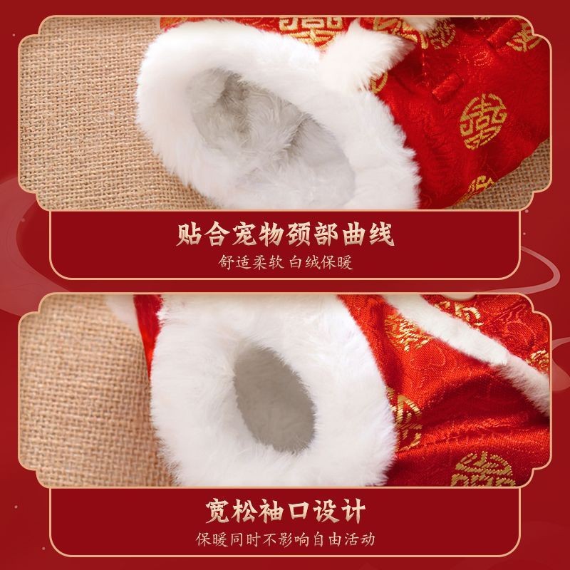 개 옷 중국 스타일 동북 큰 빨간 면 옷 테디 Bixiong 작은 강아지 가을과 겨울 옷 애완 동물 기모 새해스토어 가기