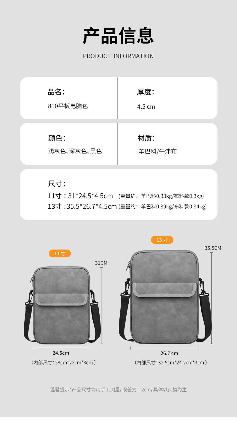 심플하고 패셔너블하며 가벼운 아이패드 태블릿 컴퓨터 가방, 고급스러운 느낌의 방수 대용량 크로스바디 태블릿 수납 가방 13inch스토어 가기