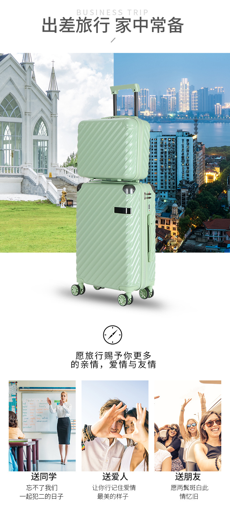 고급 수하물 투피스 PC 여행 비밀번호 상자 튼튼하고 튼튼한 수하물 화장품 가방