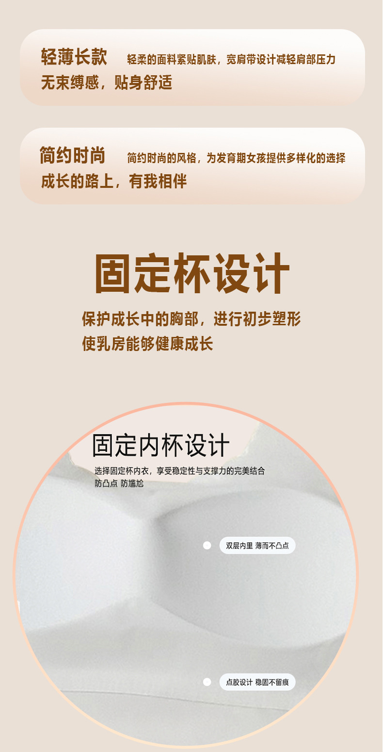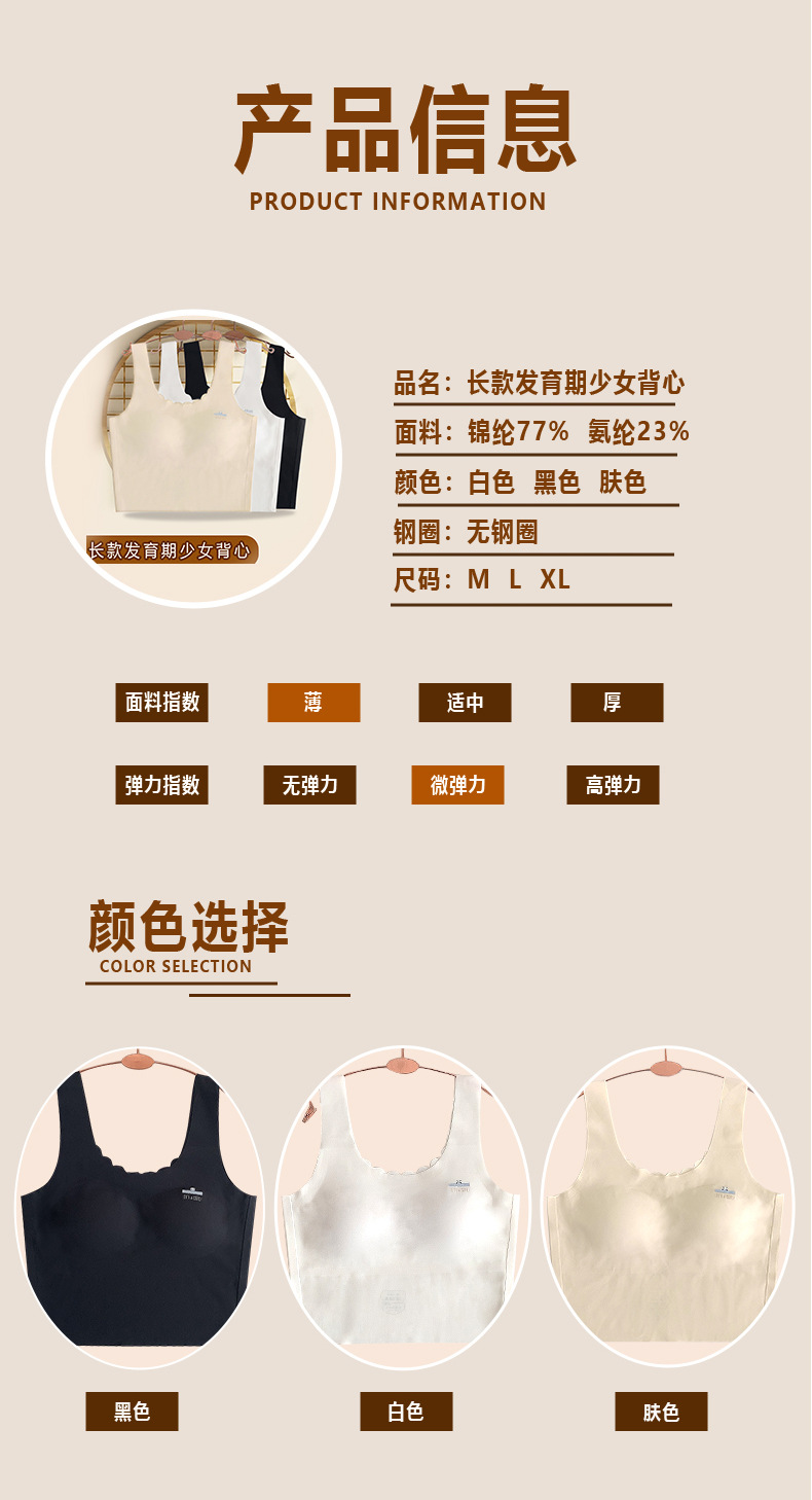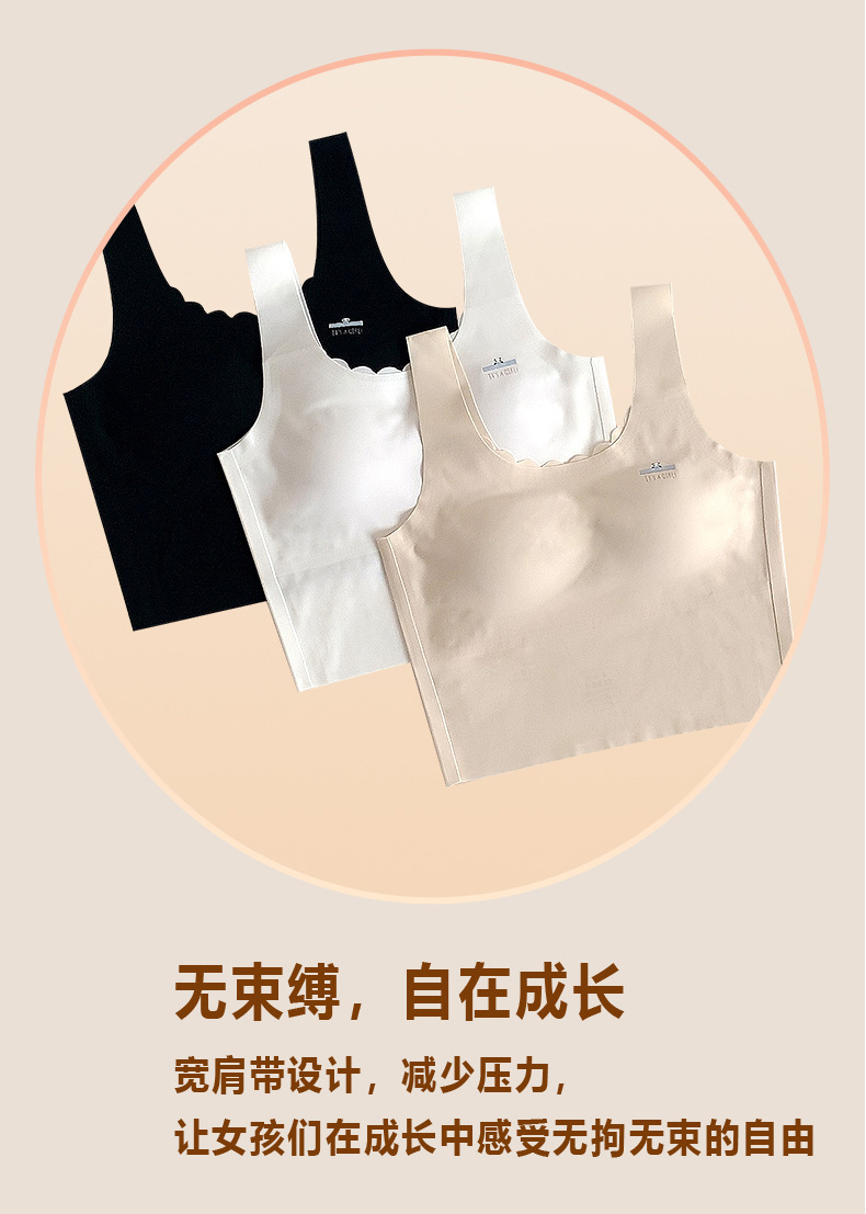 새로운 추적없는 발달 작은 조끼 속옷 여성의 중간 길이 넓은 어깨 끈 고정 컵 안티 범프 소녀의 브래지어