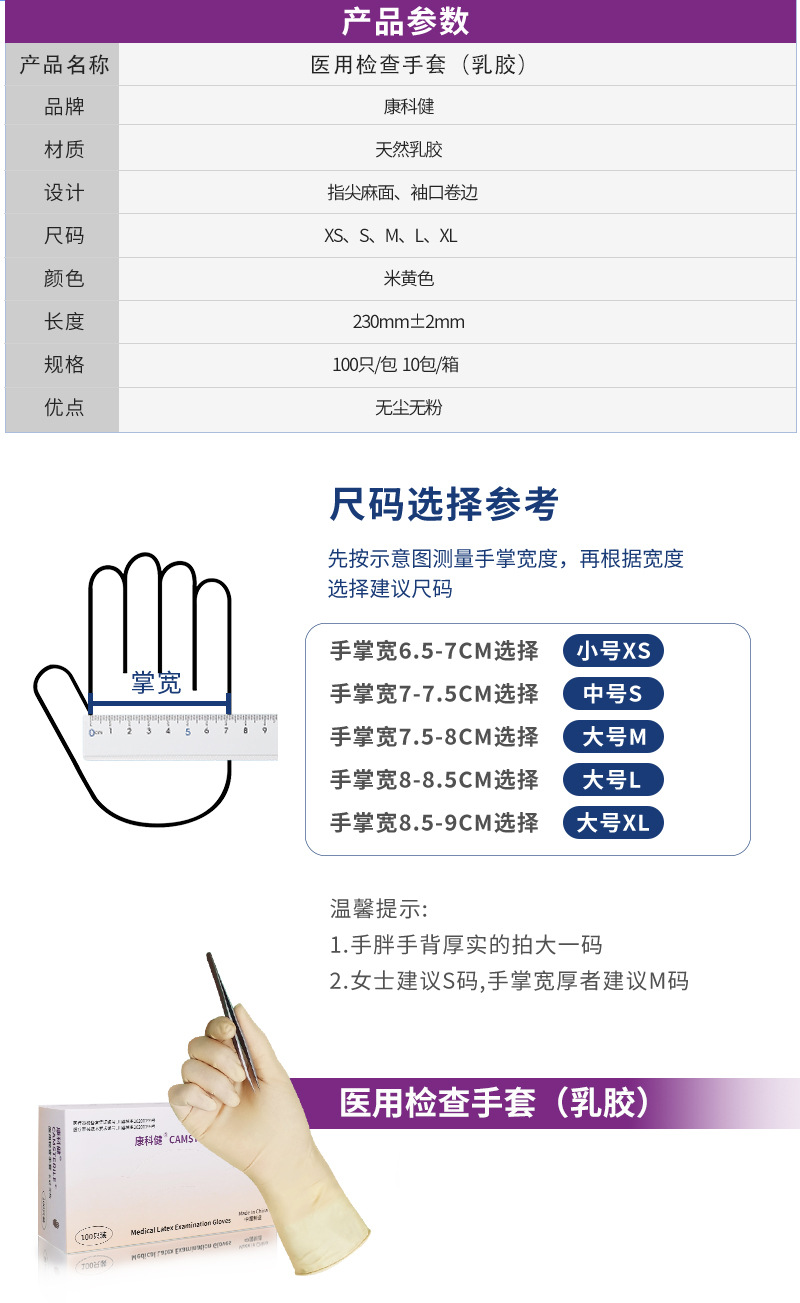 강케지안 일회용 의료용 라텍스 고무 검사 장갑 두껍게 치과병원 보호 장갑 100/상자
