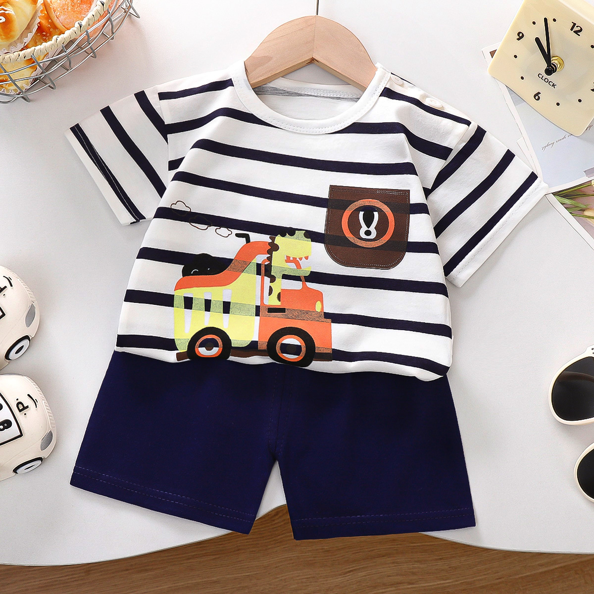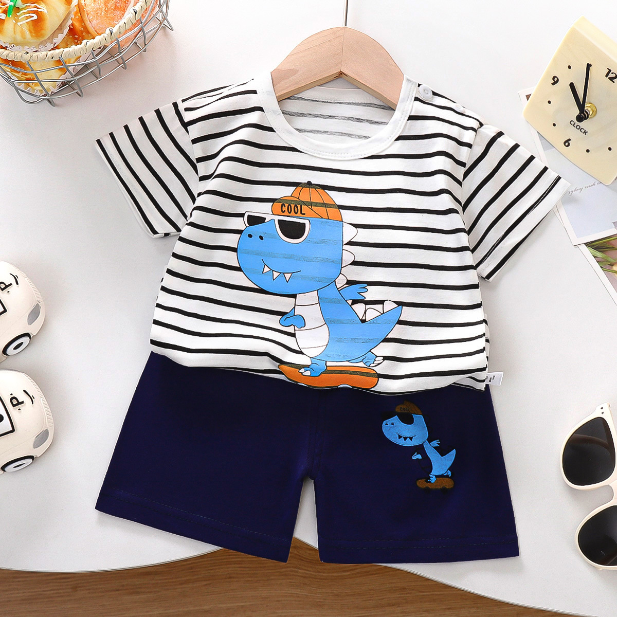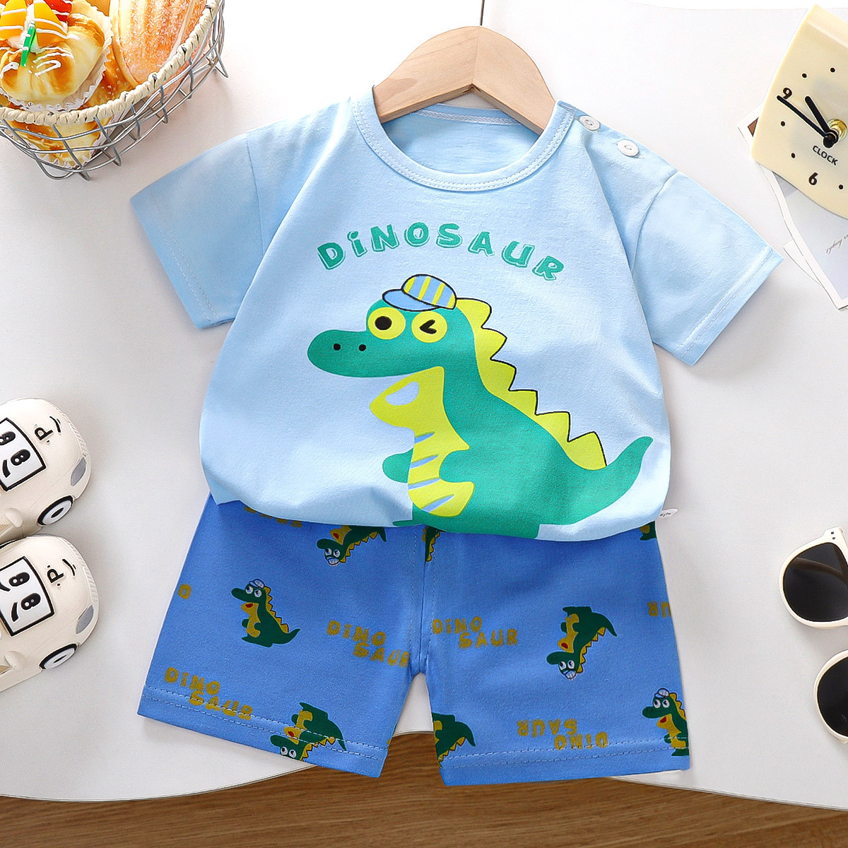 어린이 반팔 세트 면 여름 새 한국 스타일 소년 반바지 아기를위한 얇은 아동복 소녀 여름 옷스토어 가기