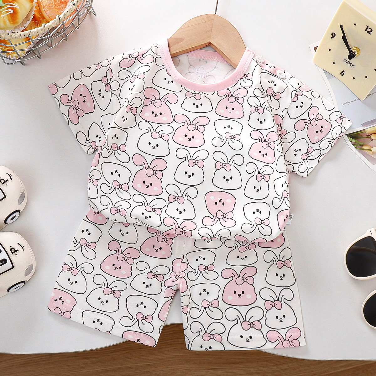 어린이 반팔 세트 면 여름 새 한국 스타일 소년 반바지 아기를위한 얇은 아동복 소녀 여름 옷