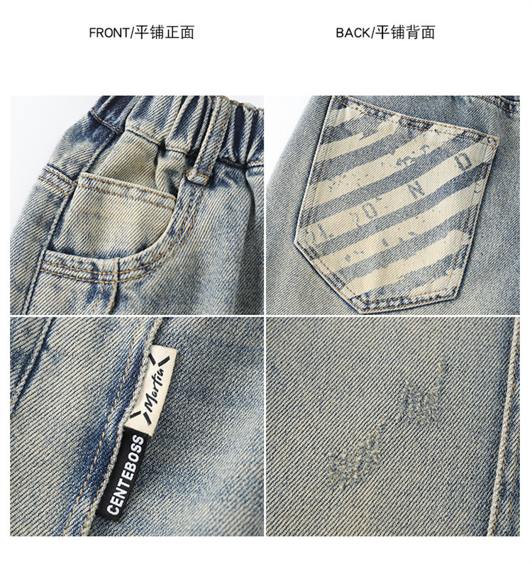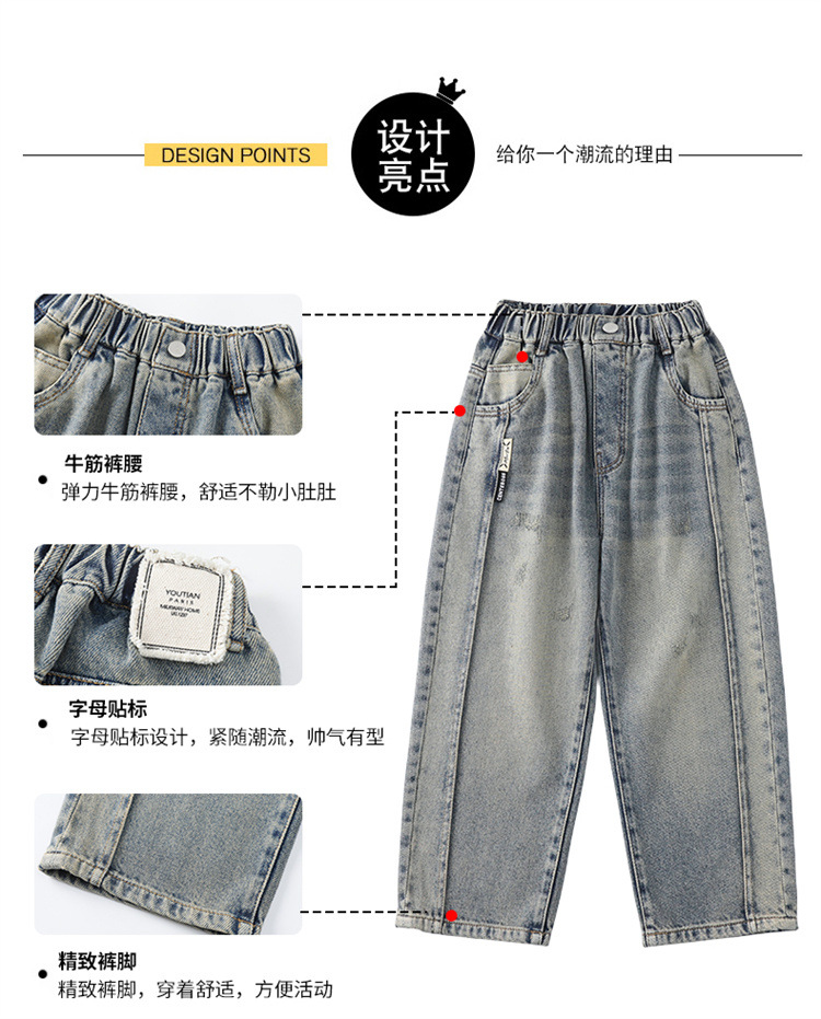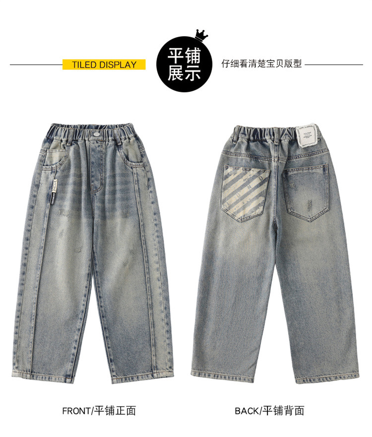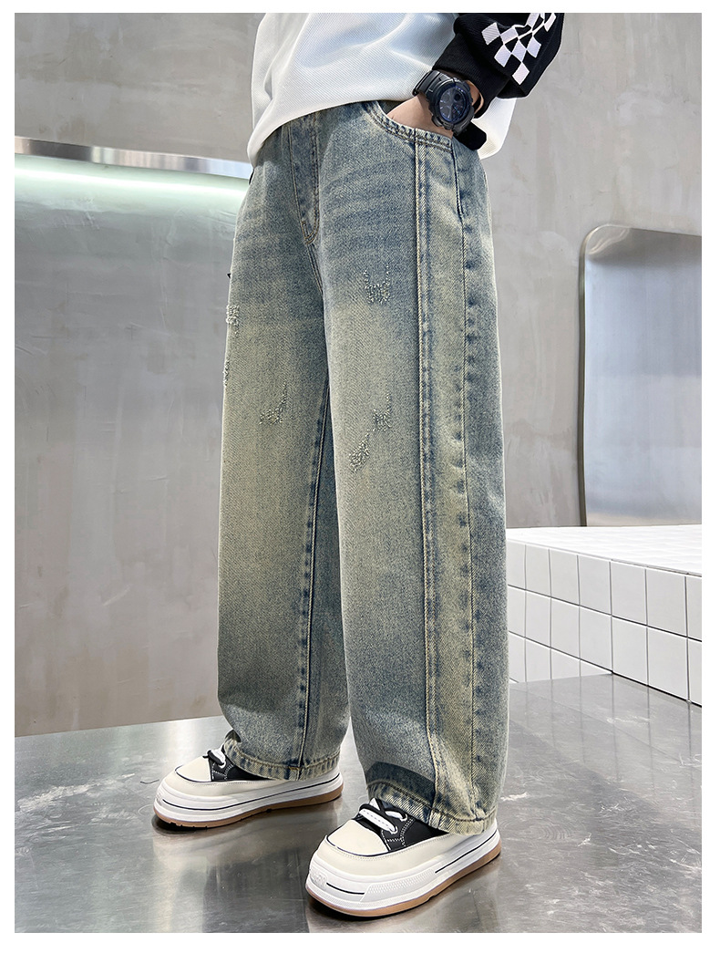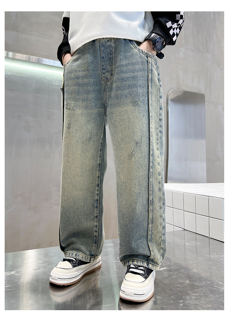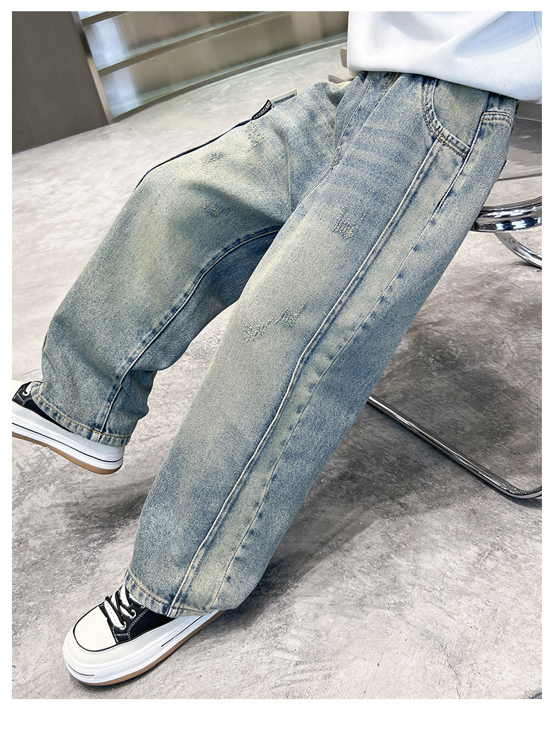 소년 데님 바지 2025 봄 새로운 스타일 중대형 어린이 봄과 가을 유행 스트레이트 바지 어린이 느슨한 넓은 다리 바지스토어 가기