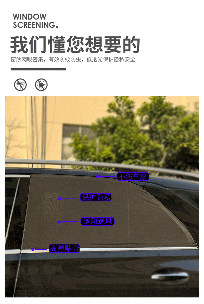 자동차 차양 선 스크린 단열 개인 정보 보호 측면 창 차양 야외 유니버설 자동차 안티 모기 커튼