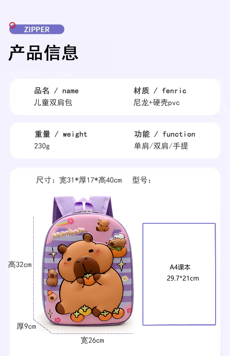 카피 바라 어린이 가방 만화 하드 쉘 가방 유치원 소년과 소녀 3-6 세 패션 배낭 도매