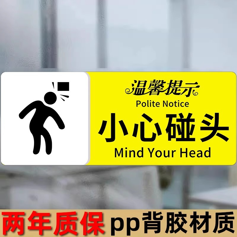 • 머리에 조심하세요 - 노란색 모델(5개 팩) - PP 접착 스티커_10x24cm