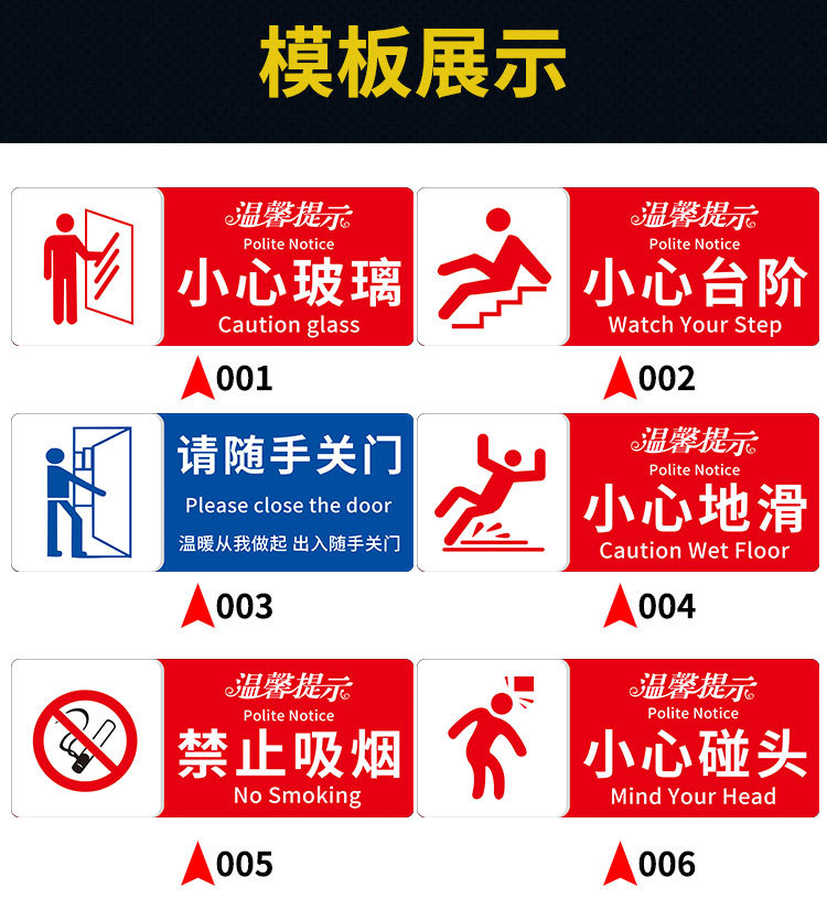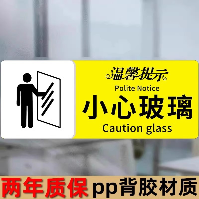 • 유리 조심하세요 (5매 들이 팩)-노란색 모델-PP 접착 스티커_13x30cm