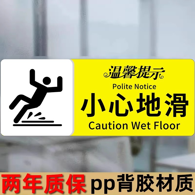 • 유리 조심하세요 (5매 들이 팩)-노란색 모델-PP 접착 스티커_10x24cm