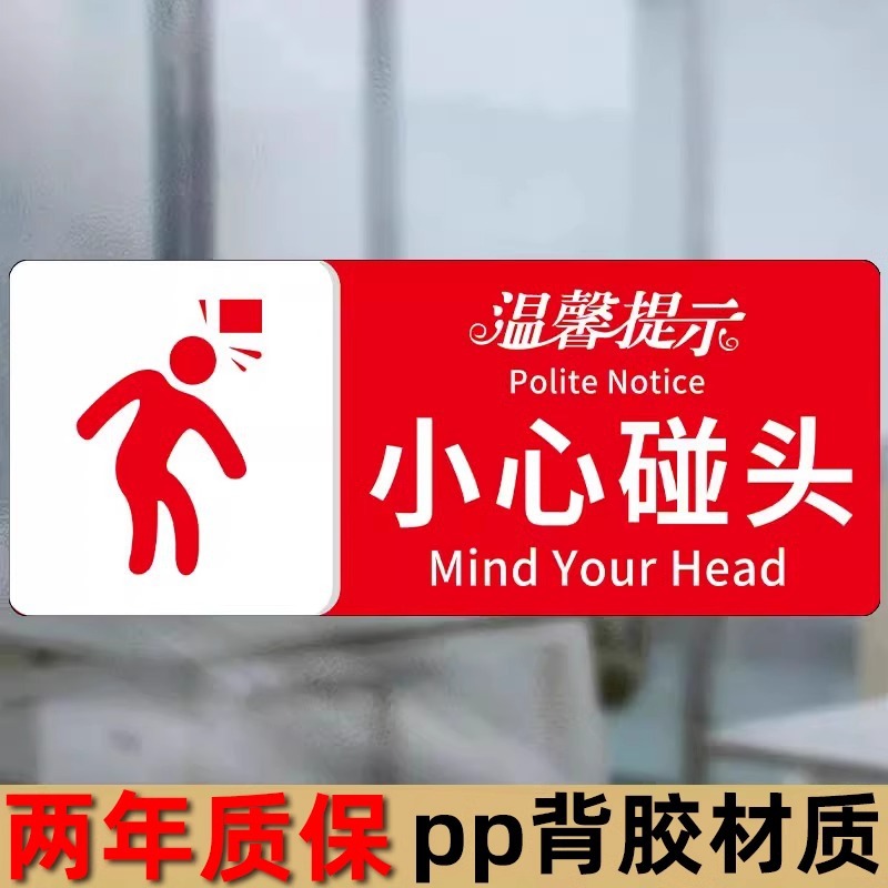 • 머리에 조심하세요 - 레드모델(5개입) - PP접착스티커_10x24cm