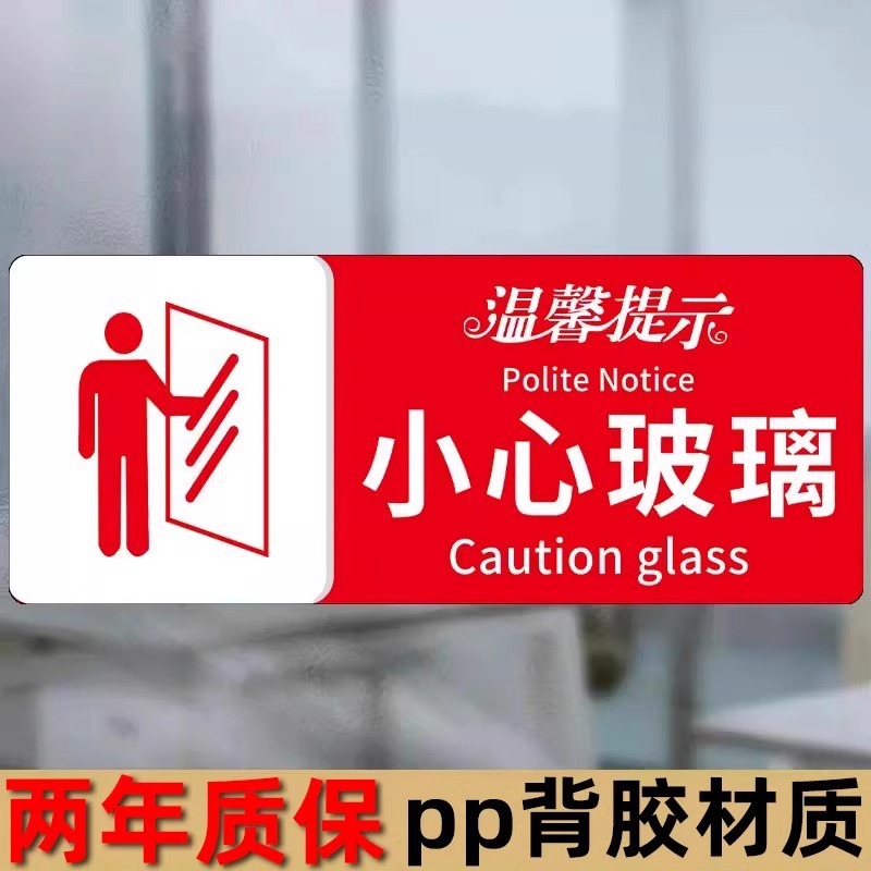 • 유리 조심하세요 (5매 들이 팩) - 레드 모델 - PP 접착 스티커_10x24cm