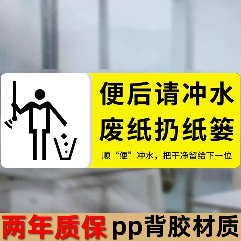 • 변기 후 물세척 - 노란색 모델(5개입) - PP 접착 스티커_10x24cm