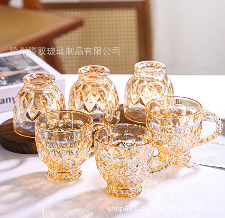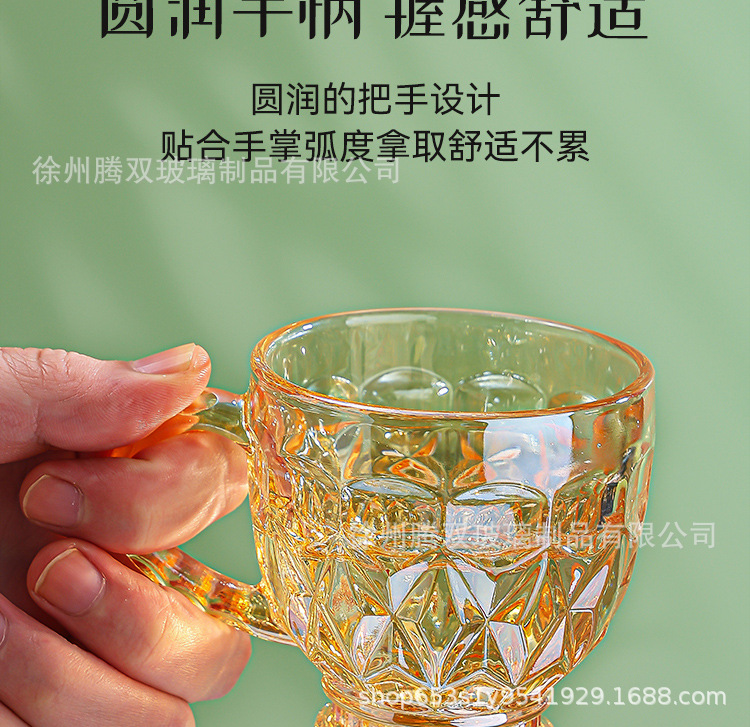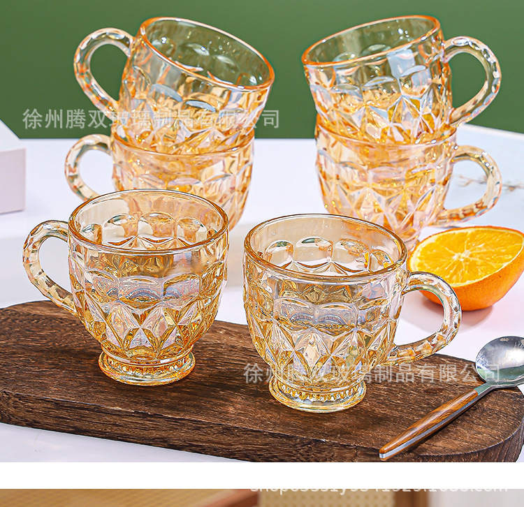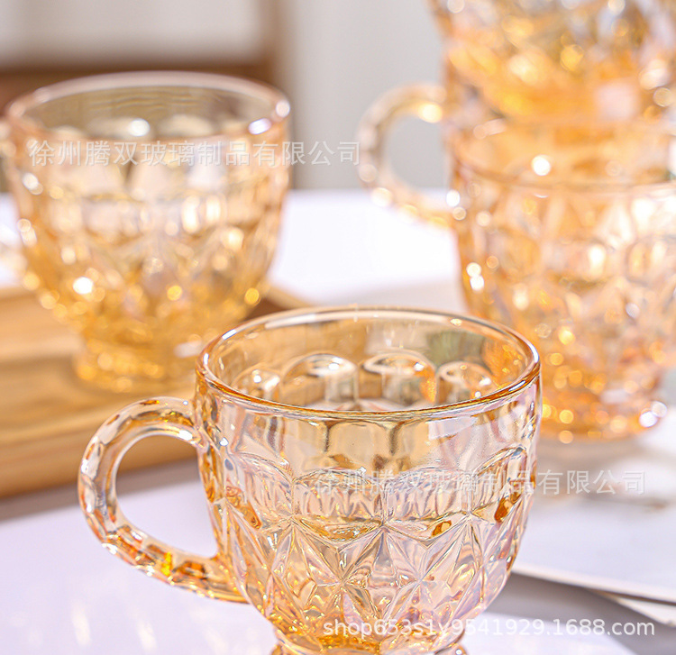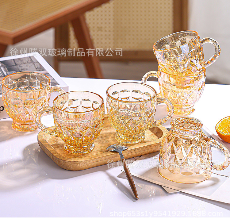 높은 가치의 유럽식 핸드 핸들 컵 앰버 유리 동반 선물 컵 가정용 커피 밀크 티 컵
