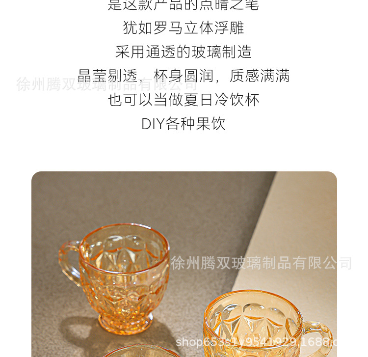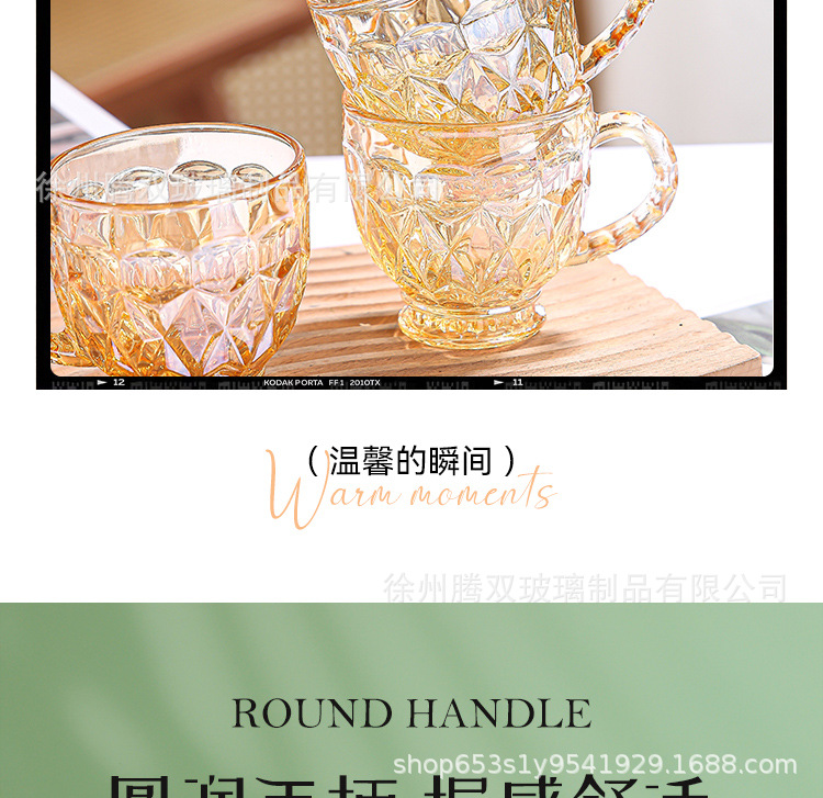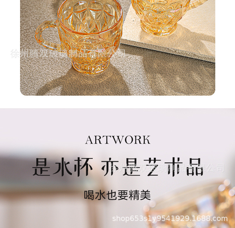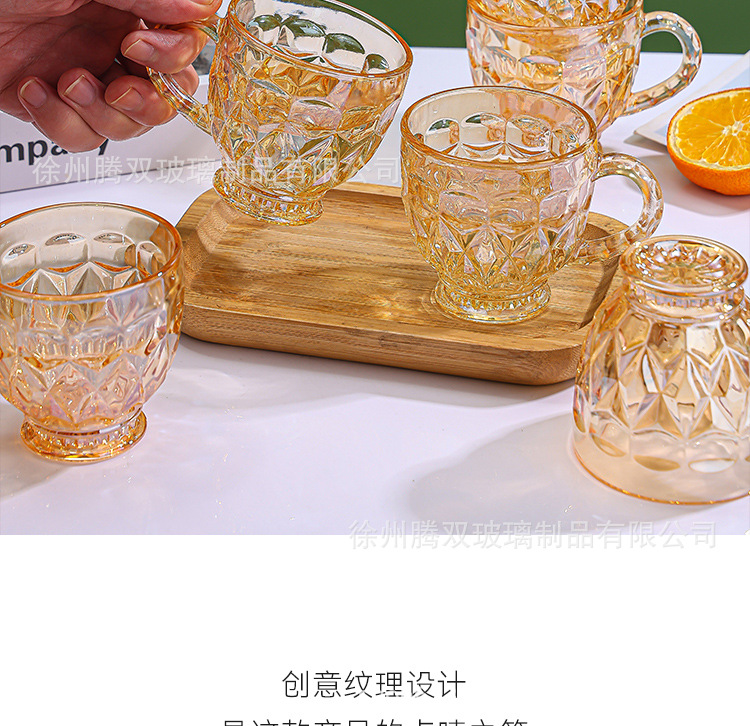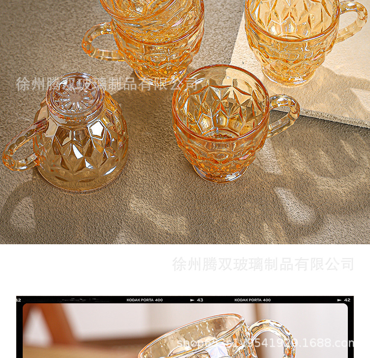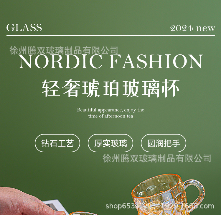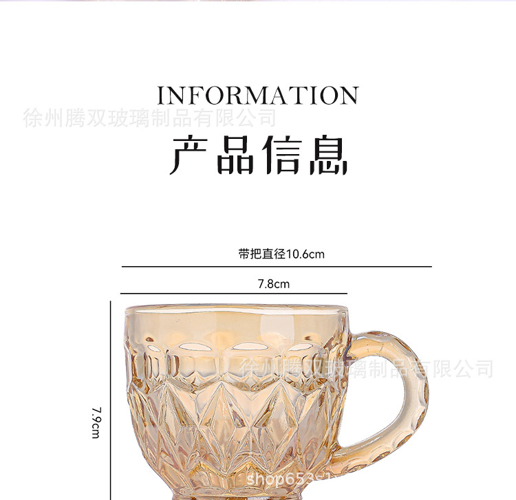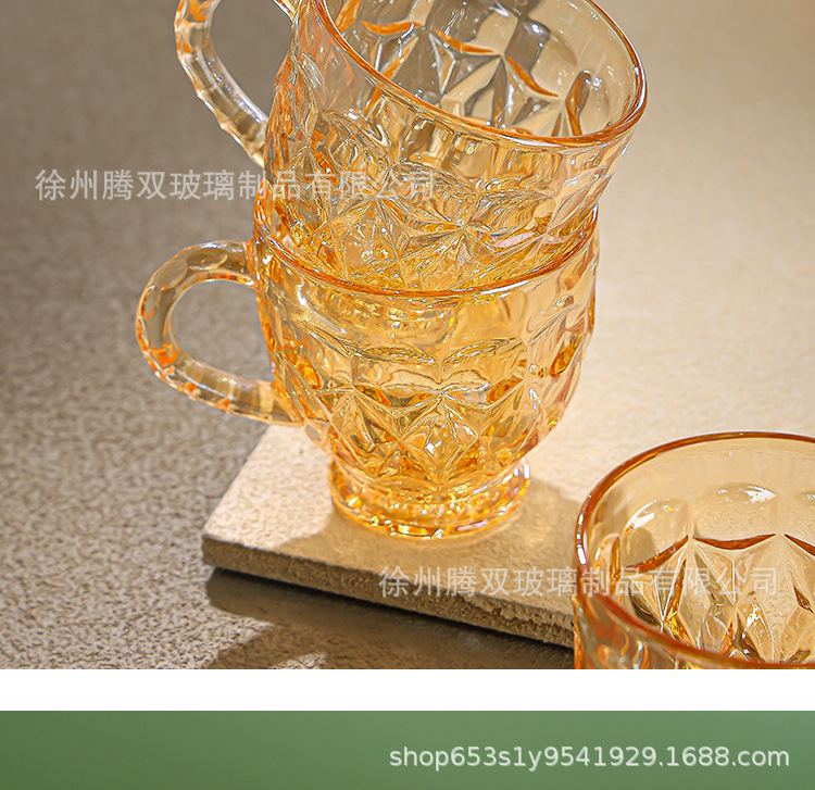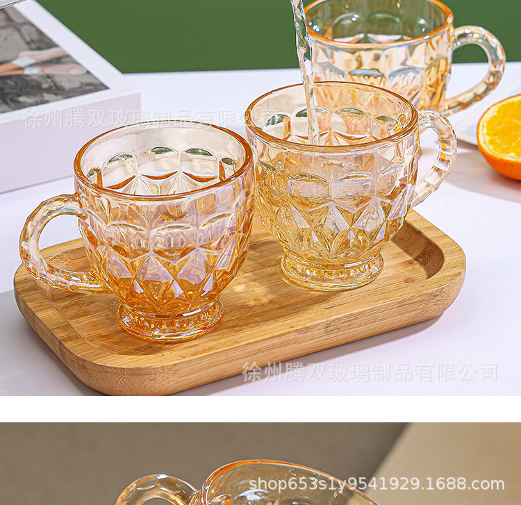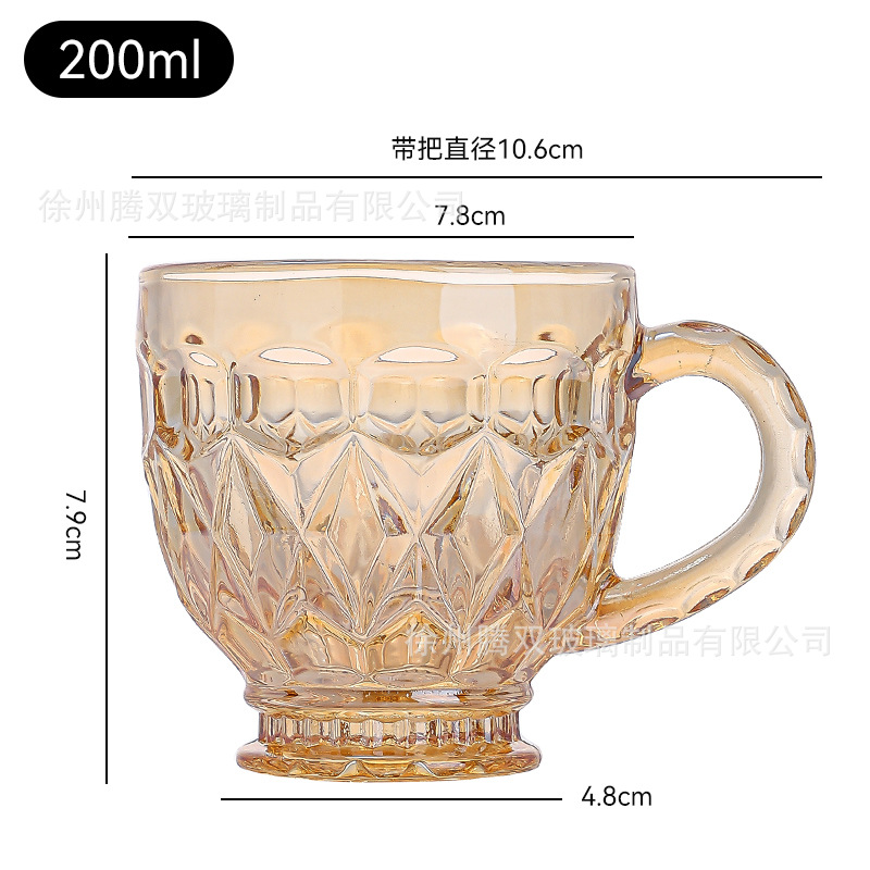 높은 가치의 유럽식 핸드 핸들 컵 앰버 유리 동반 선물 컵 가정용 커피 밀크 티 컵스토어 가기