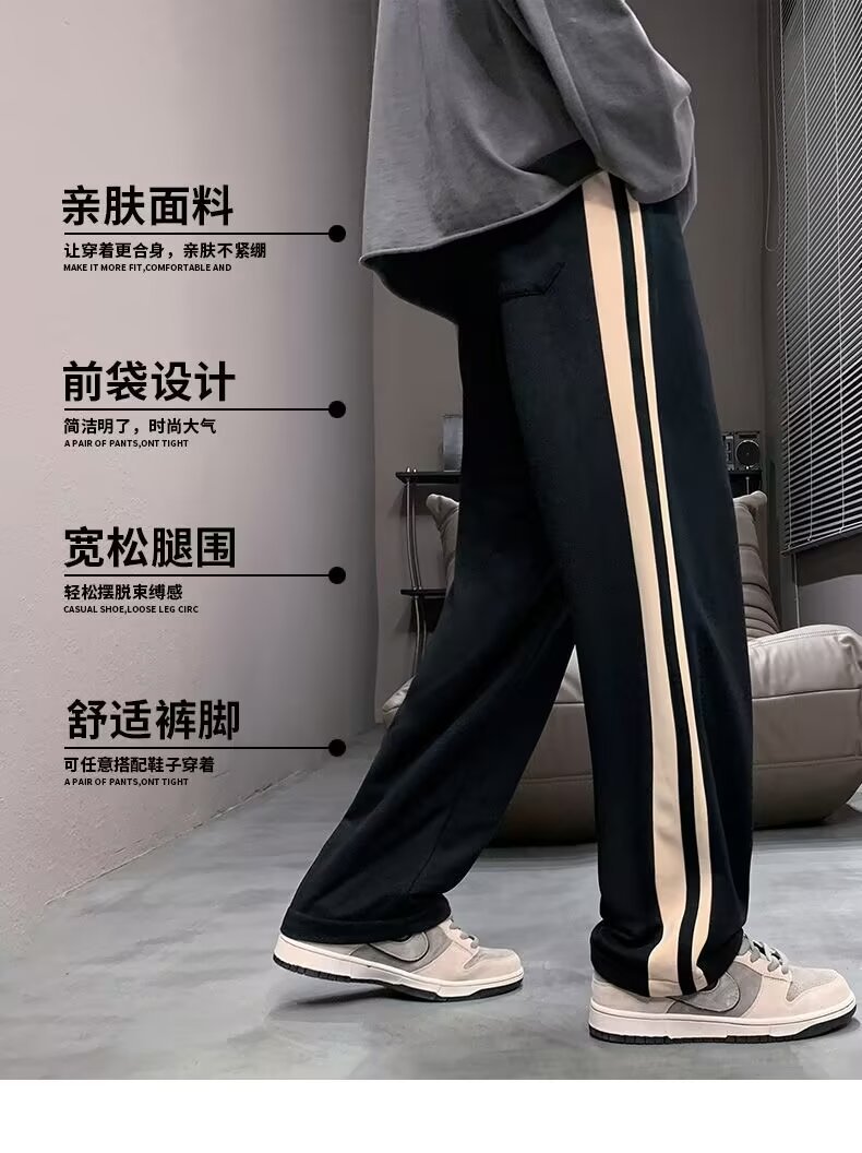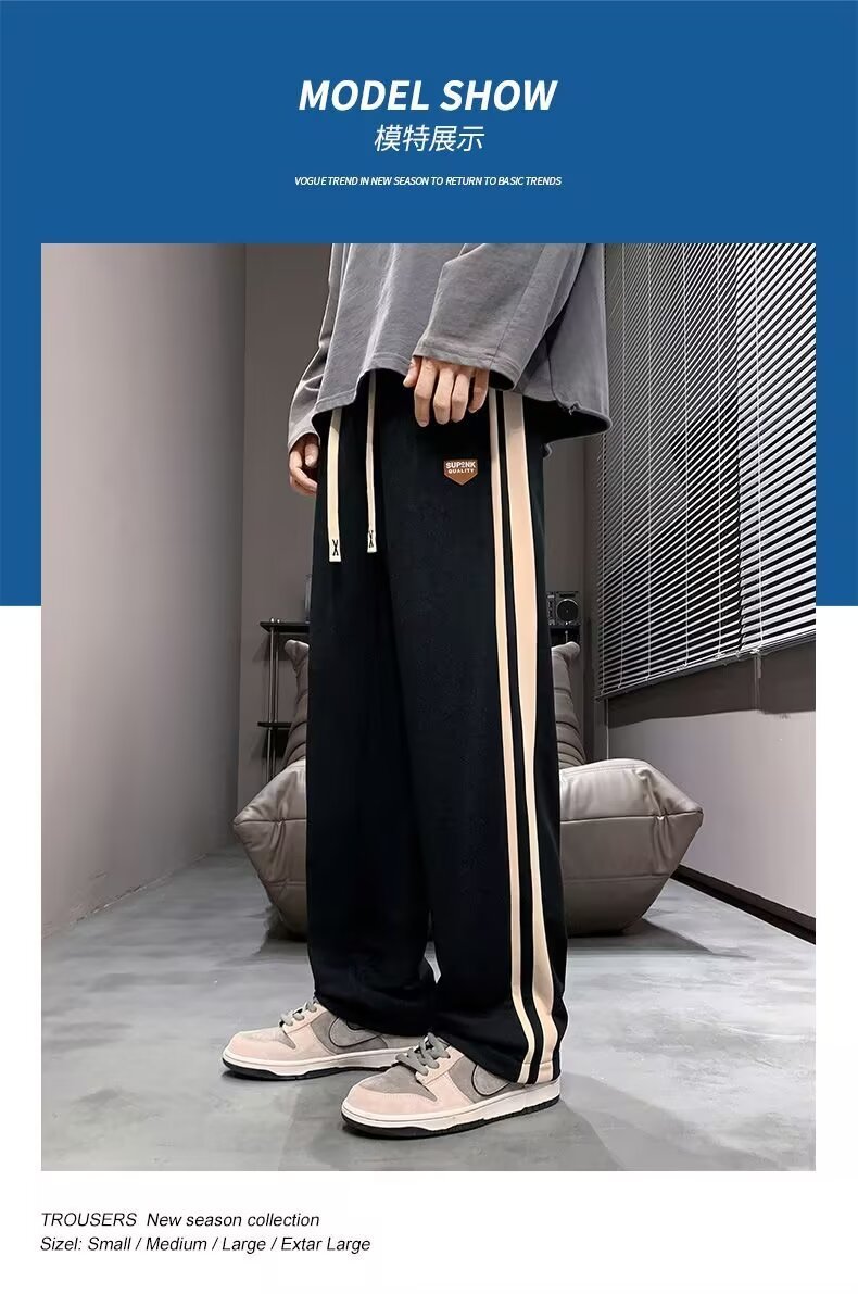 2025 새로운 도착 느슨한 캐주얼 바지 남자 한국 스타일 유행 올 매치 바지 여름 얇은 펜던트 와이드 다리 바지