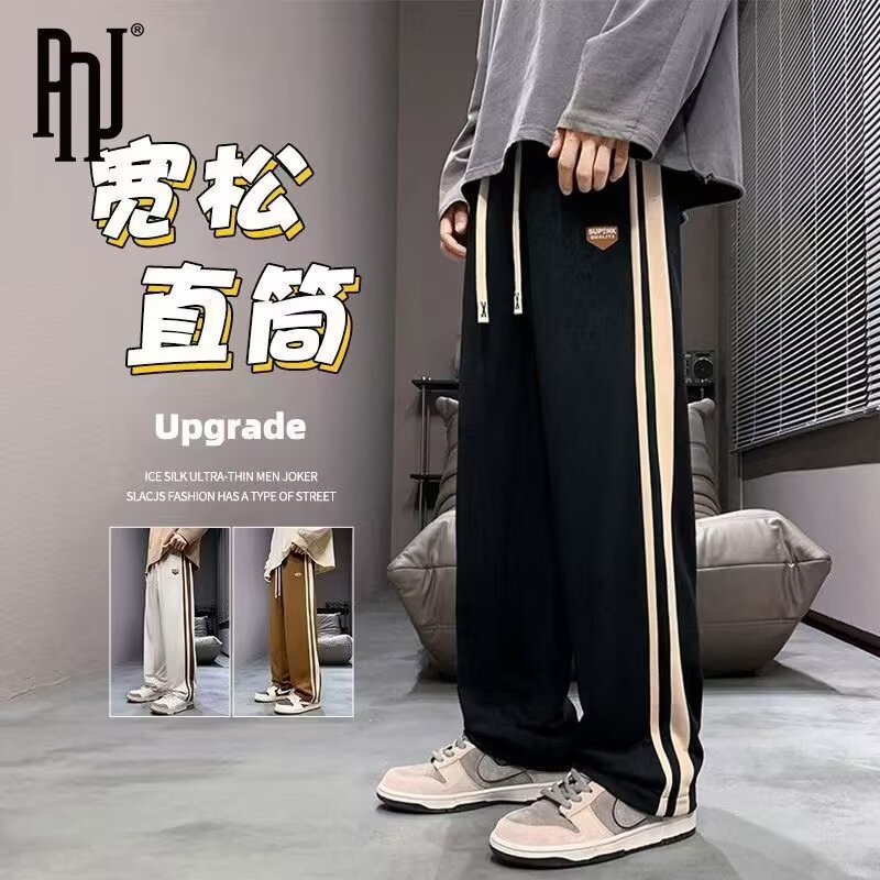 2025 새로운 도착 느슨한 캐주얼 바지 남자 한국 스타일 유행 올 매치 바지 여름 얇은 펜던트 와이드 다리 바지스토어 가기