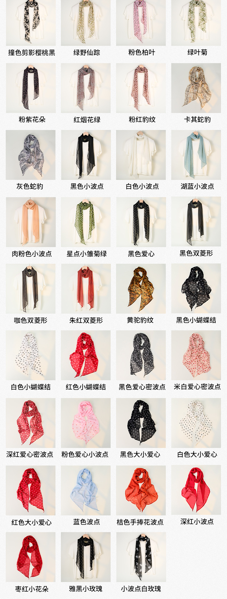 새로운 프랑스 스타일 긴 스카프 여성의 봄과 여름 경량 Georgette 스카프 캐주얼 태양 보호 외부 스카프 장식