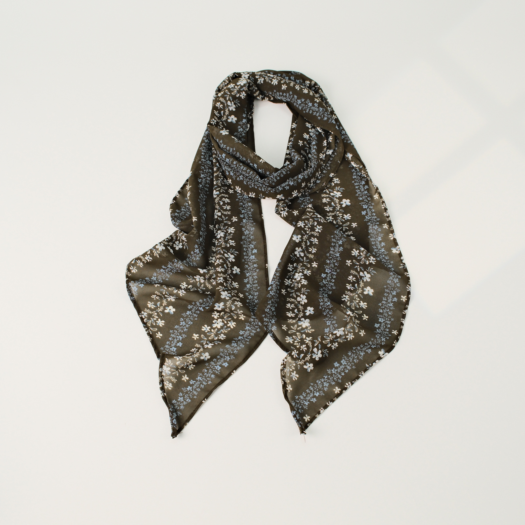 • 갈색-녹색 바탕에 파란색과 흰색 꽃무늬 편지지