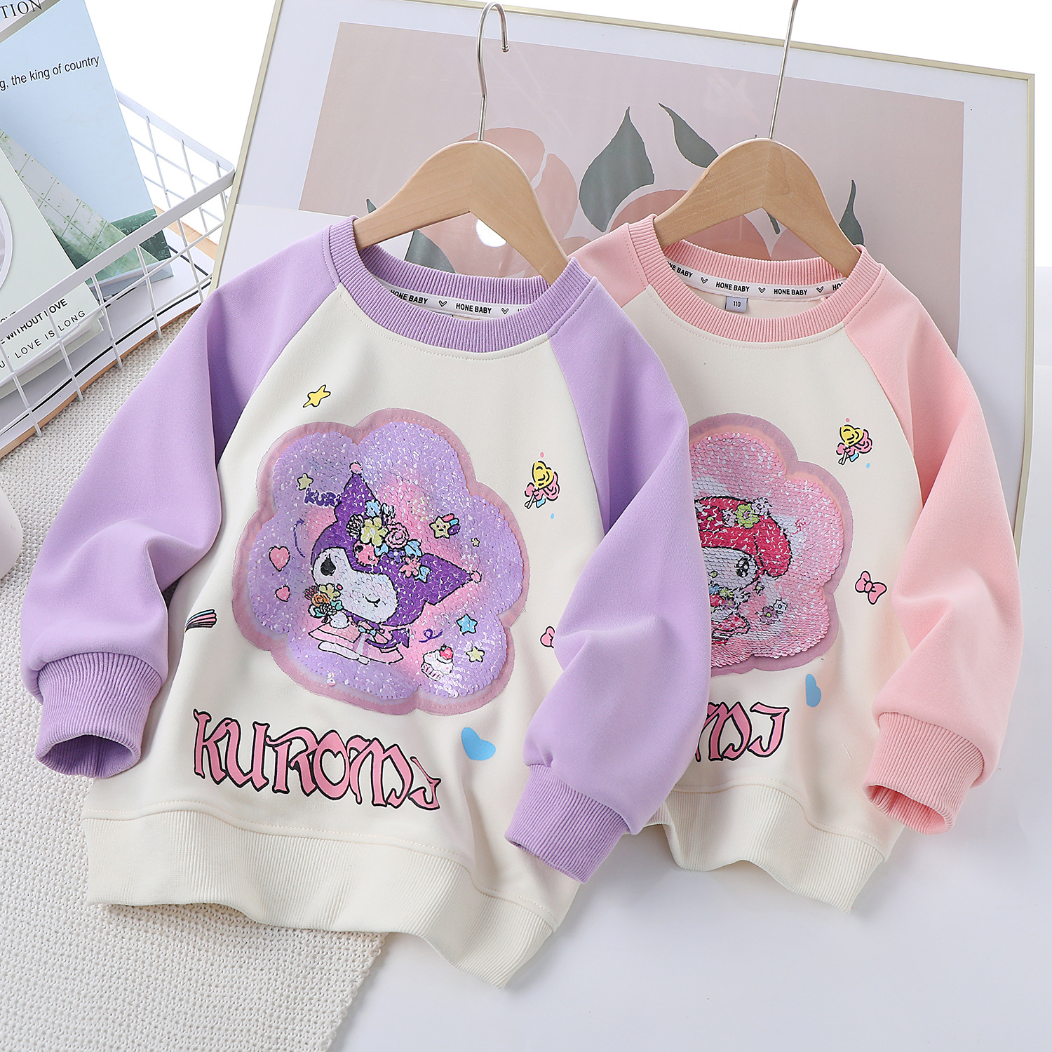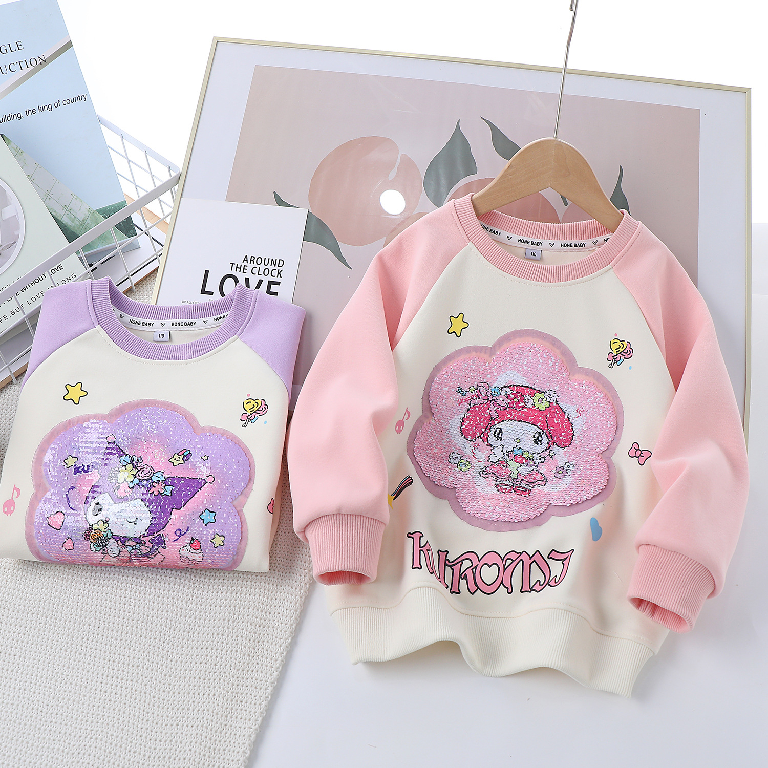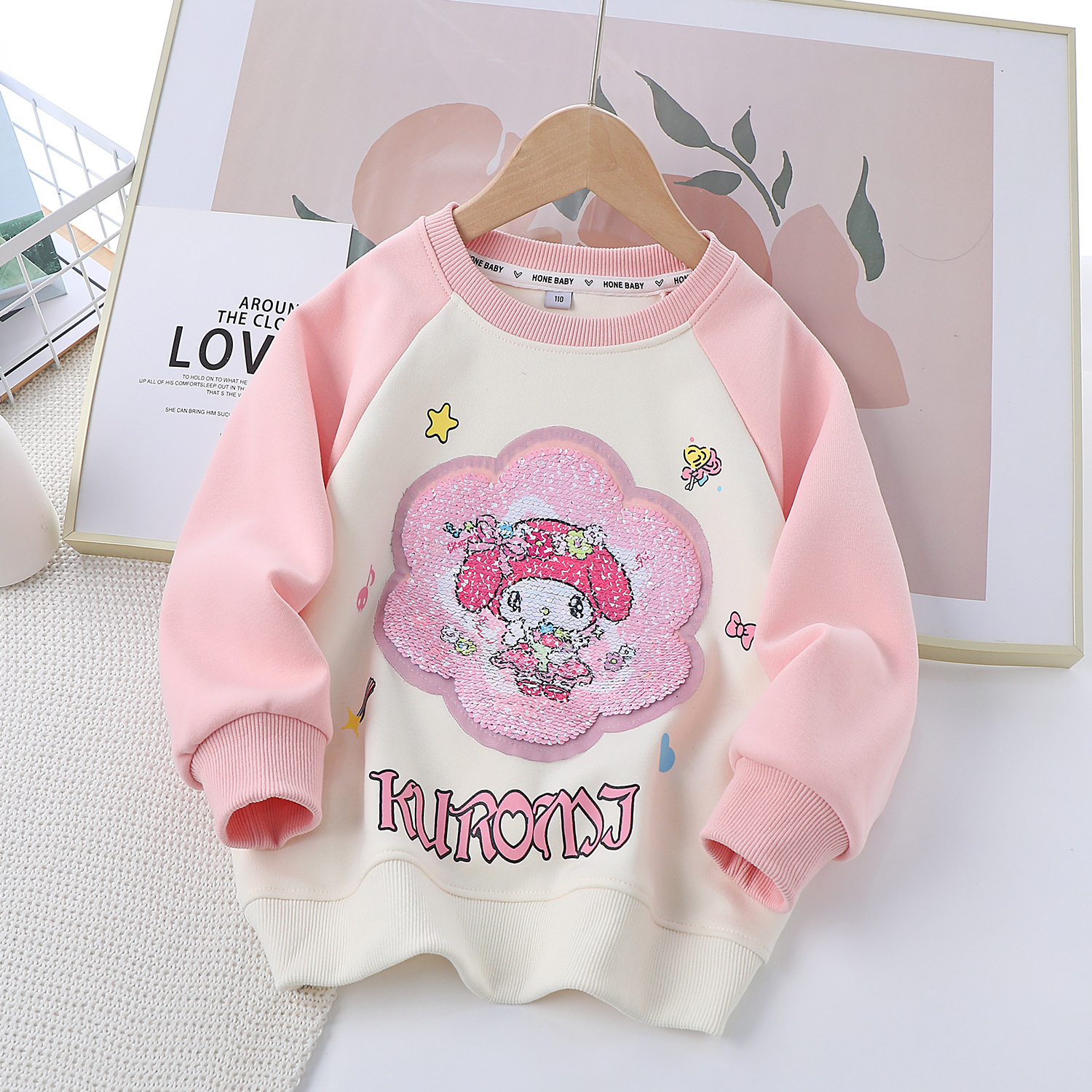 아동복 2025 봄 새 한국식 어린이 플립 업 스웨터 소녀 쿨로미 외국식 탑 아기의 둥근 목 셔츠스토어 가기