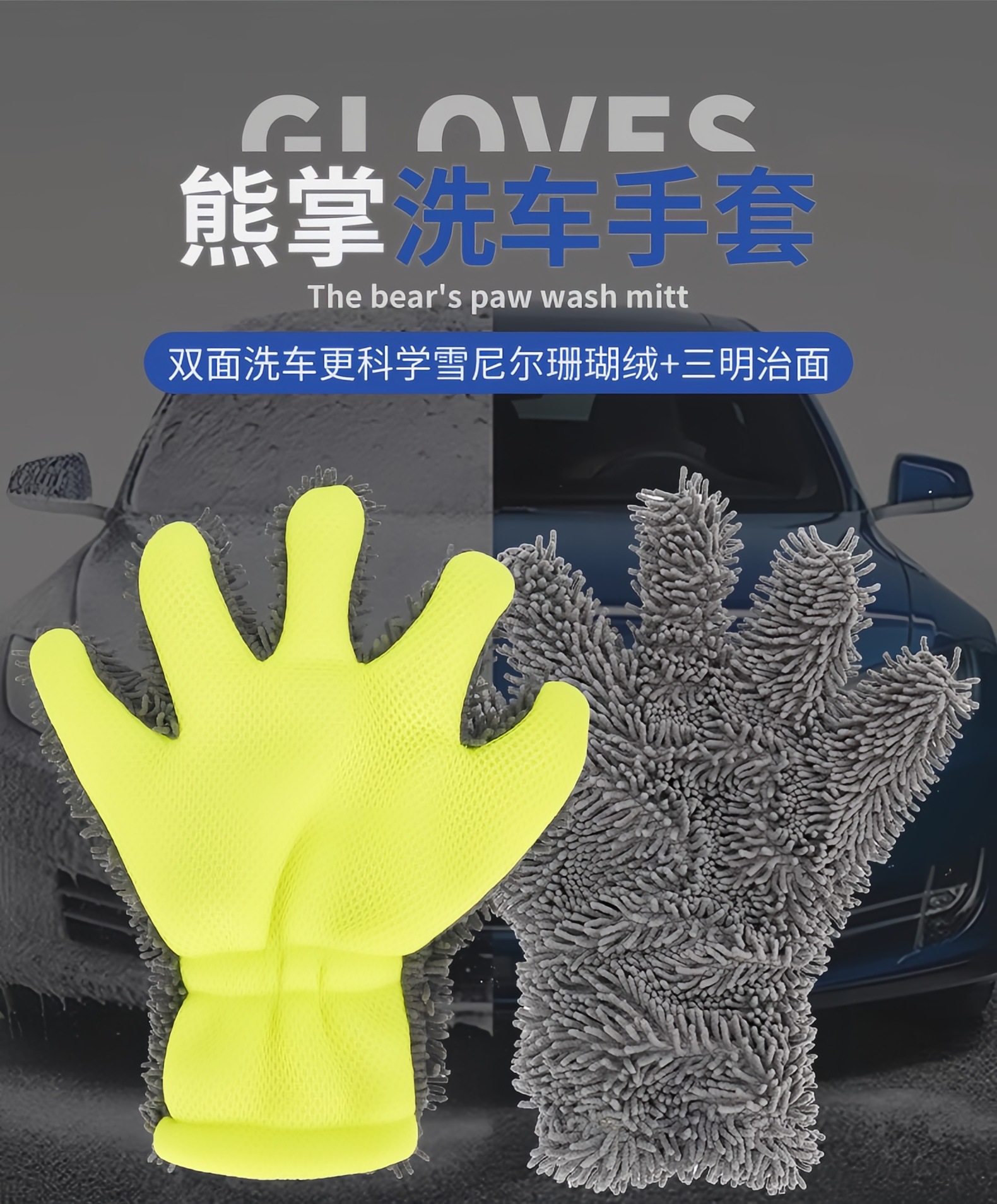 세차 장갑 다섯 손가락 chenille 산호 양털 대형 세차 장갑 세차 천 곰 발 장갑 미용 도구스토어 가기